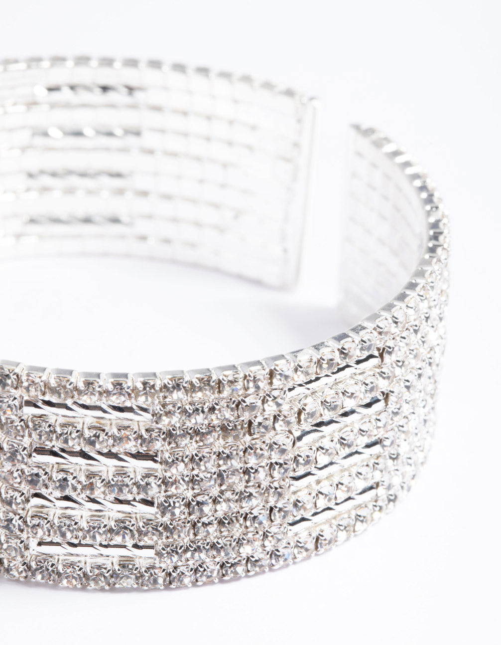 Silver Spiky 4 Row Diamante Wrist Cuff