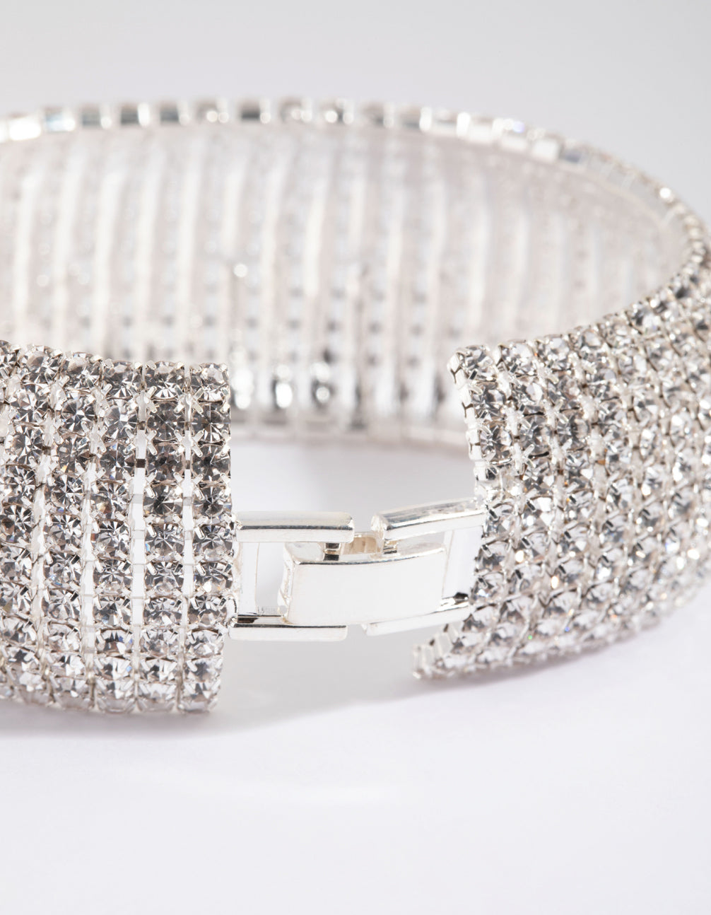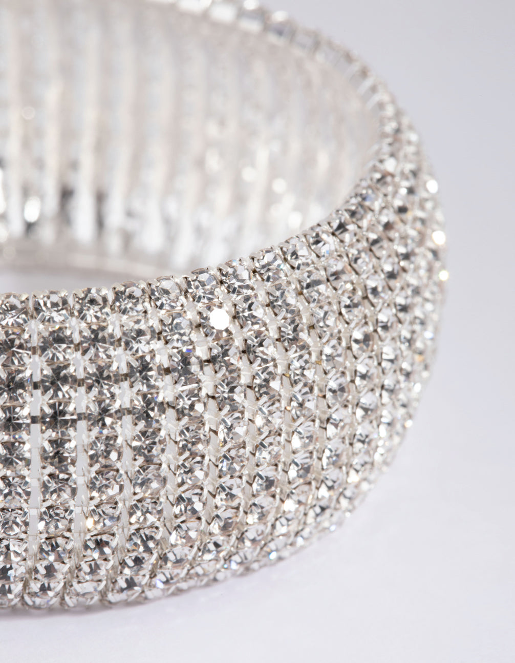 Dazzle with diamantes! This lovely bracelet boasts a perfect harmony of modern and classic styling. Wear it with black for an elegant look that conjures images of classic Hollywood, or have some fun and style it with a pop of colour!
