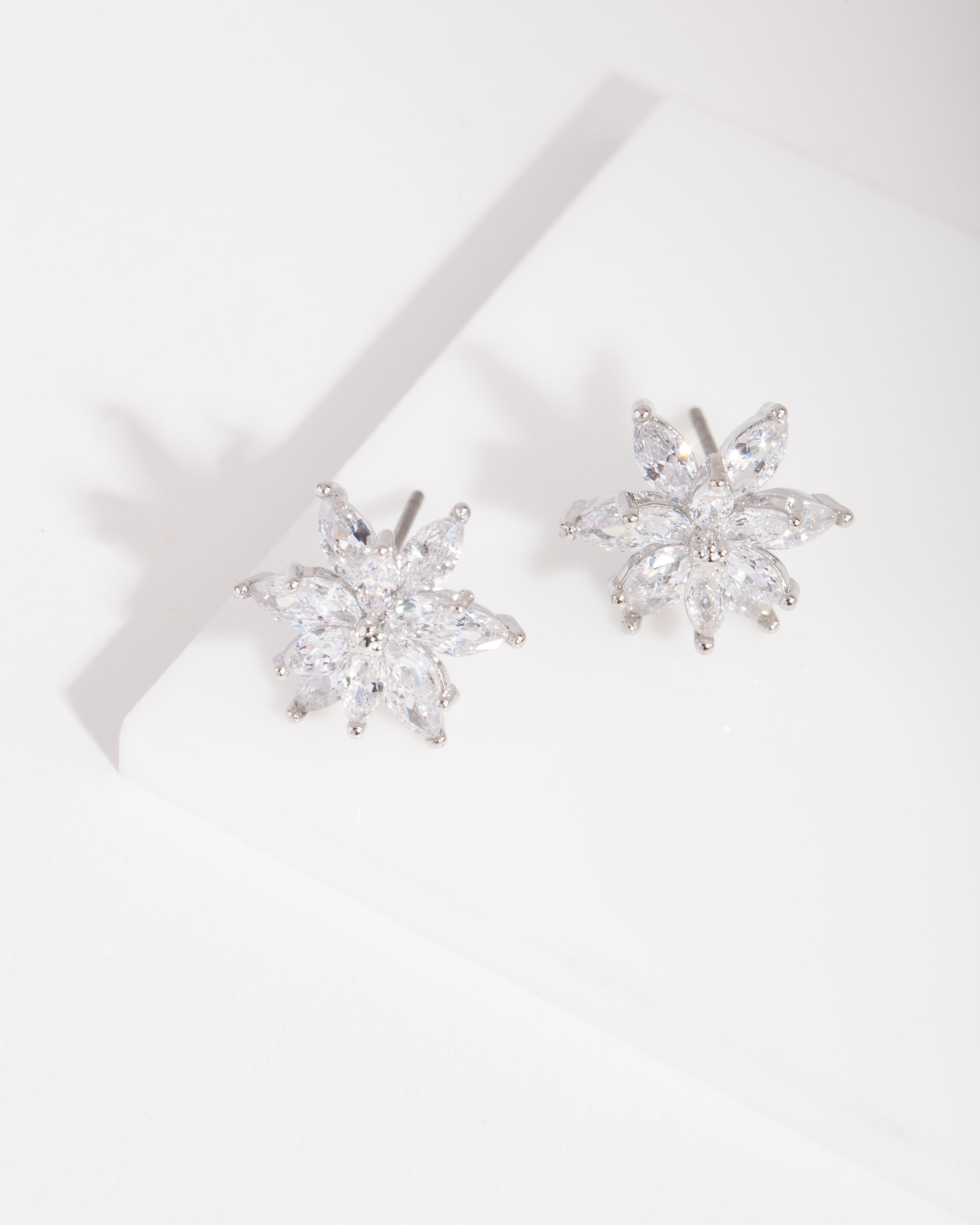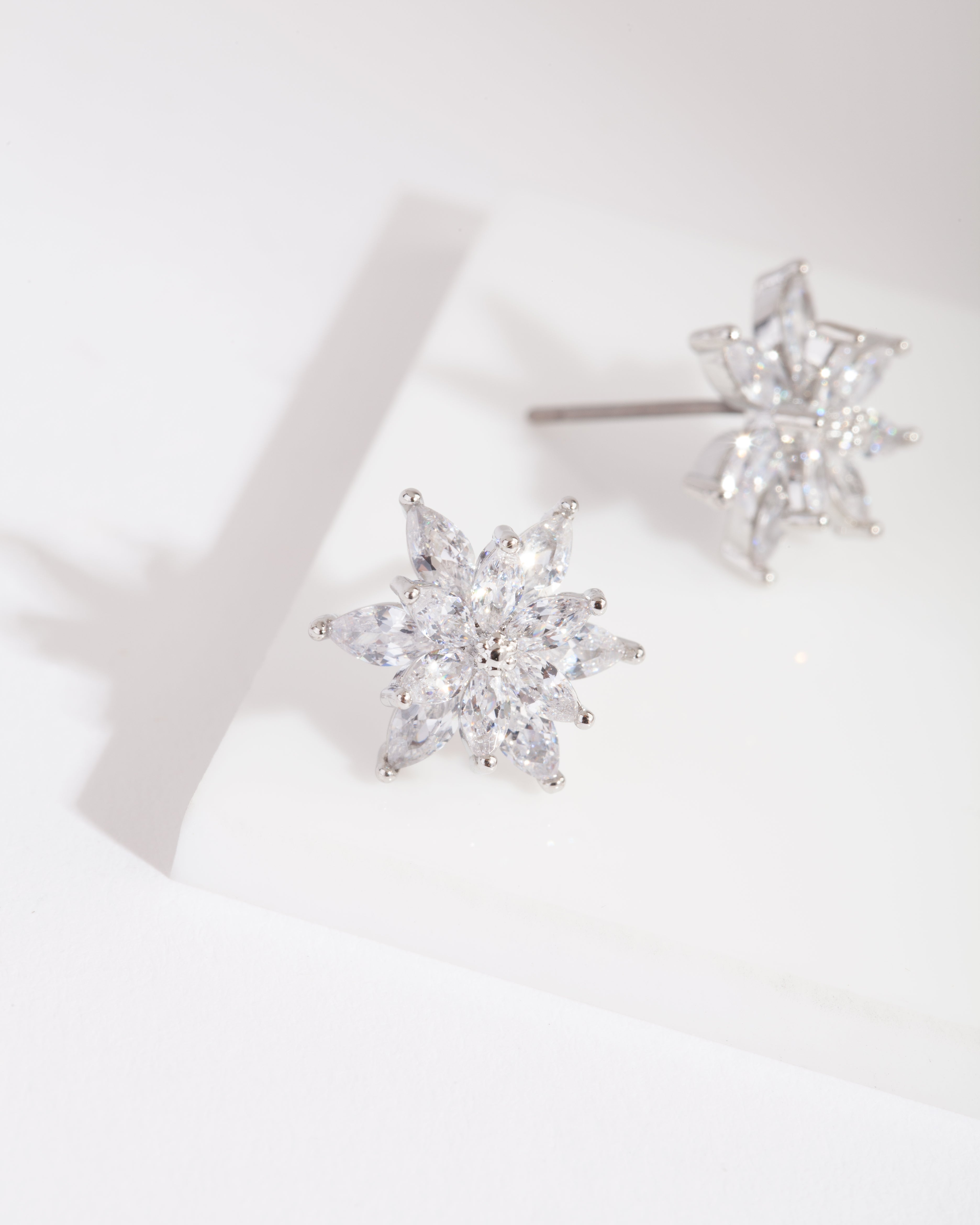 Silver Diamond Simulant Elegant Flower Stud Earring