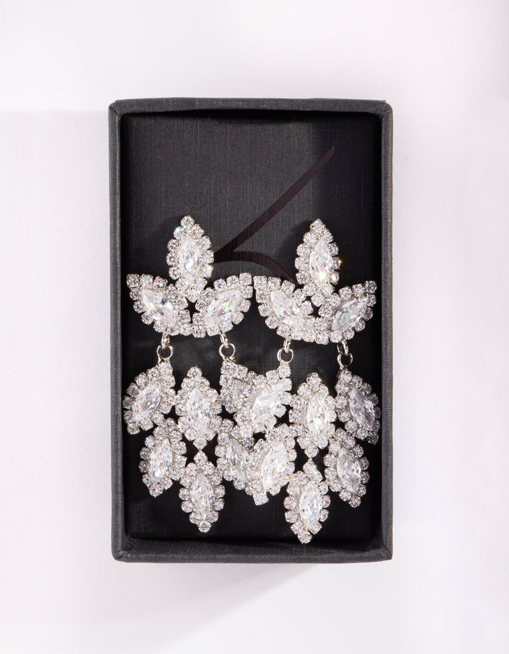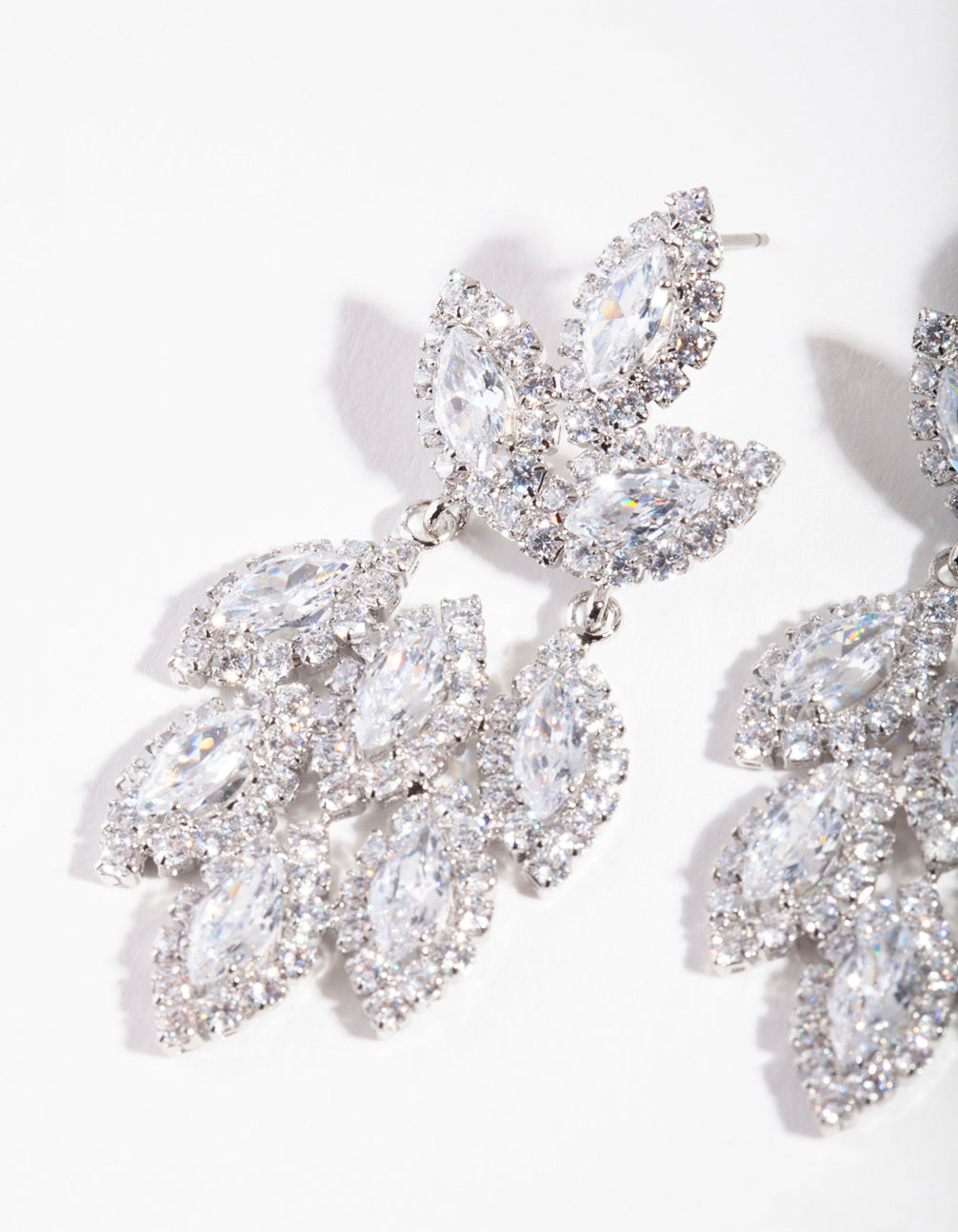 Diamond simulants are cut with an intricate design to emulate the glamour of a true diamond. This pair of earrings feature a statement shimmering design on a silver-toned setting.