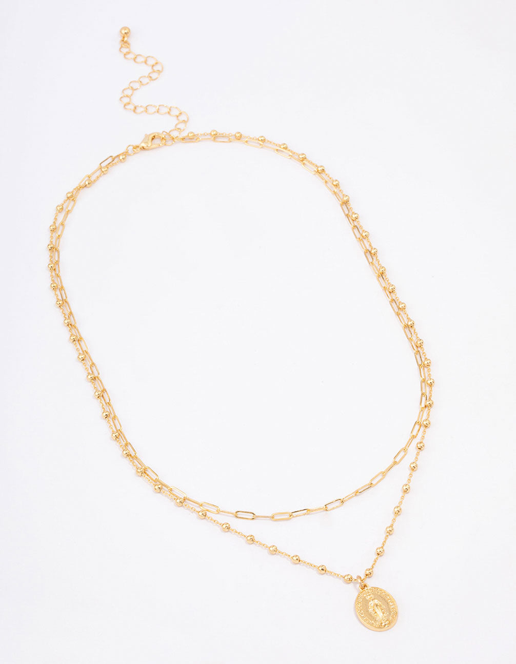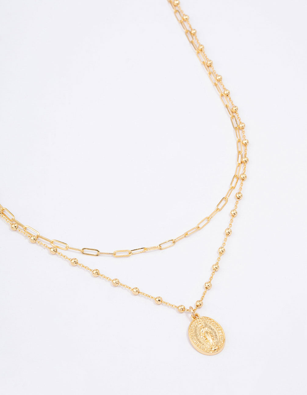 Style this Gold Plated Layered Coin Necklace with a simple pair of pendant drop earrings for a signature and refined look.