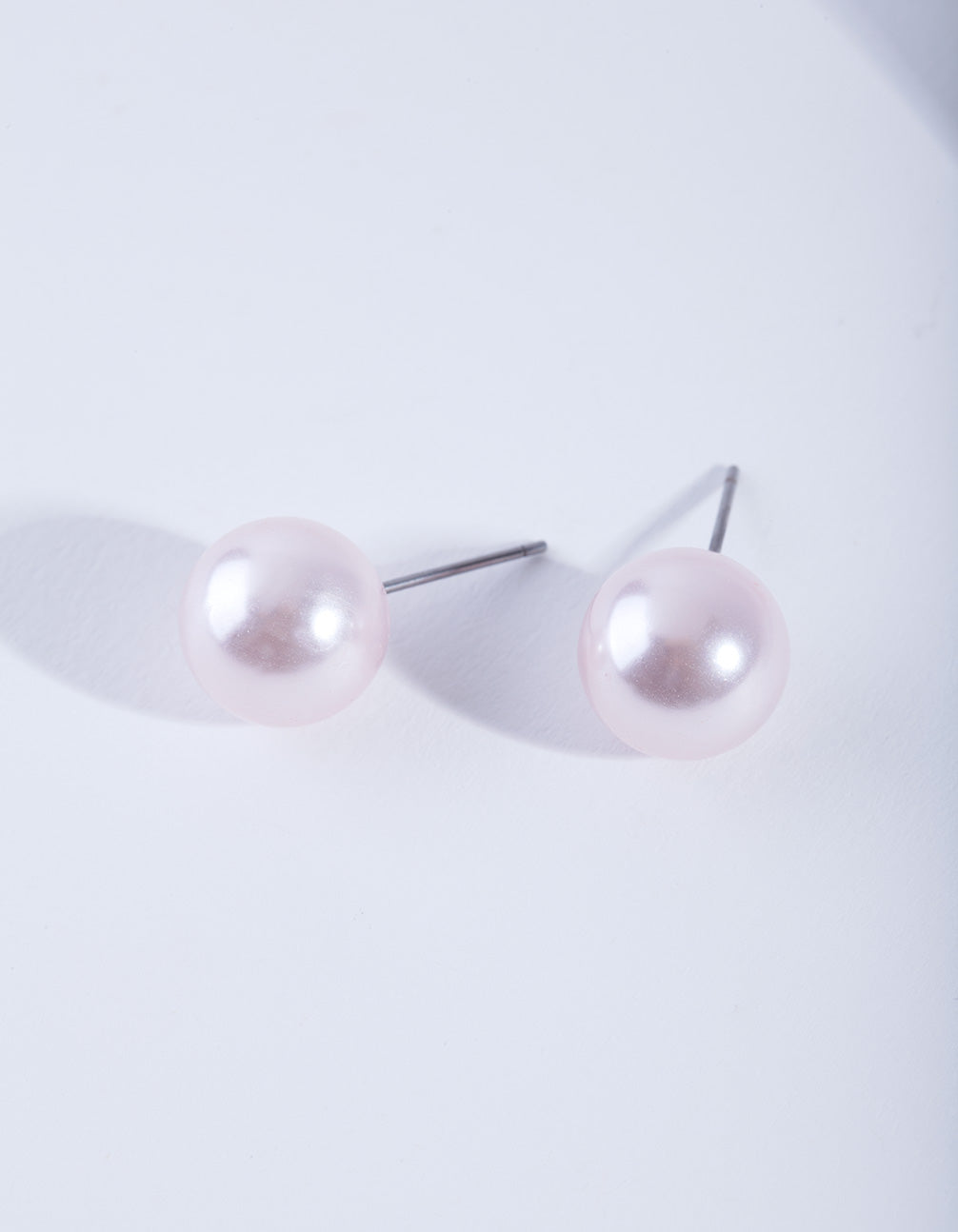 A pair of faux pearl ball stud earrings.