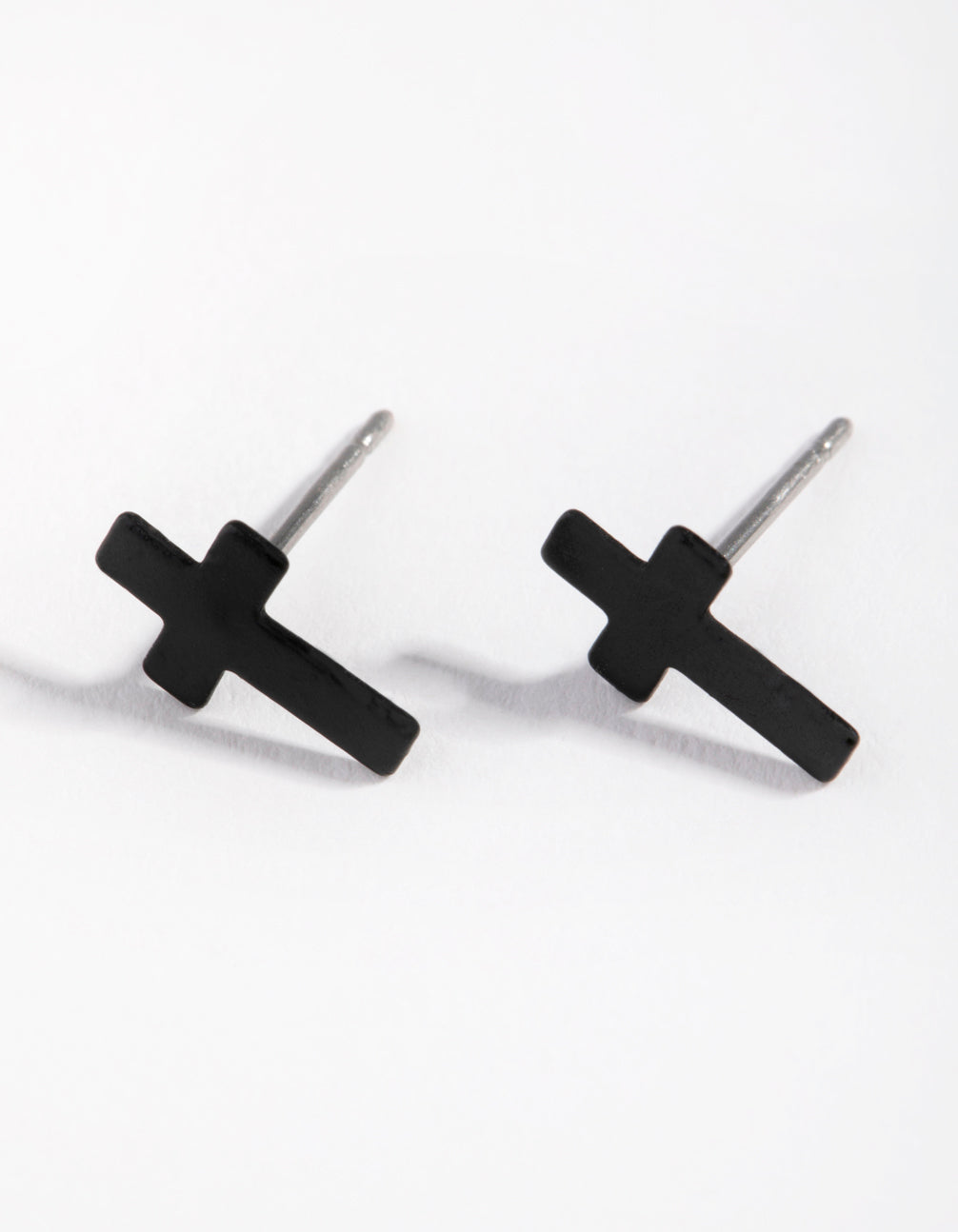 Mix it up with a new pair of earrings! These studs feature a cross design in matte black.