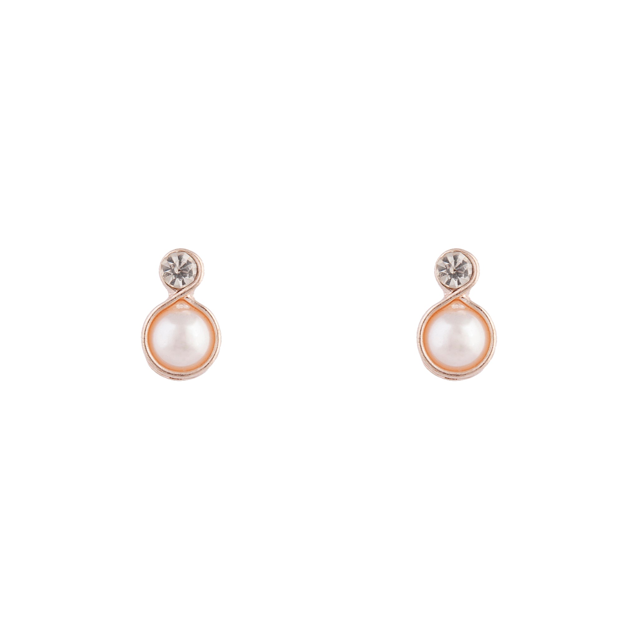 These timeless faux pearl earrings in a rose gold tone will never go out of style.