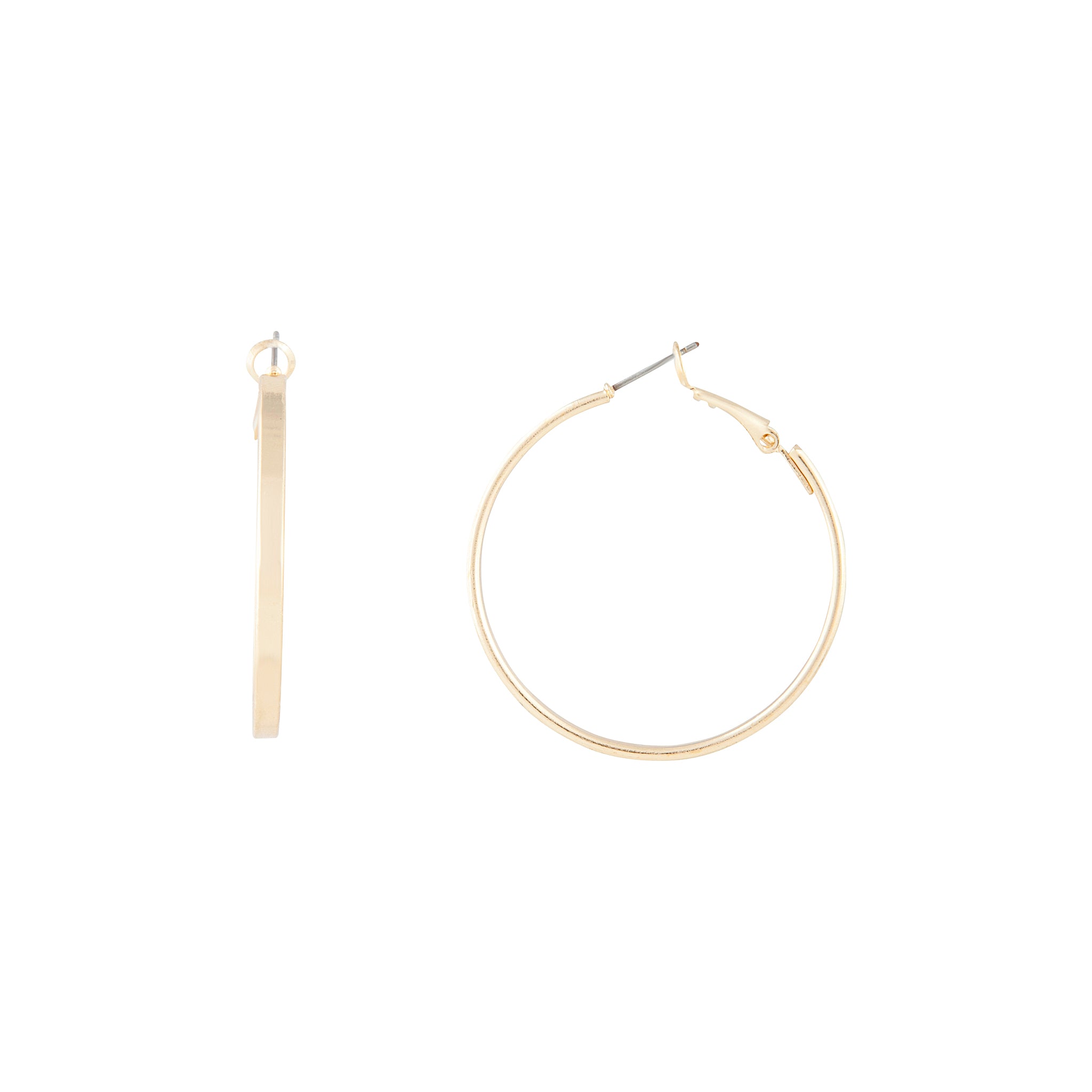 You simply can't go wrong with a pair of polished gold-toned hoops. They are a timeless and elegant addition to your daily wardrobe. Style with gold-toned chain layered necklaces and scattered dainty rings for an on-trend finish!