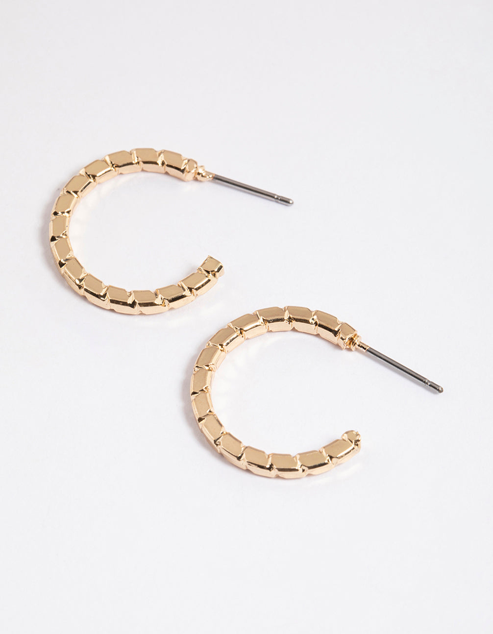 - These simple huggie hoop earrings feature a gold, rope-inspired setting for a textural look.