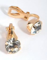 Gold Statement Diamante Clip On Earrings