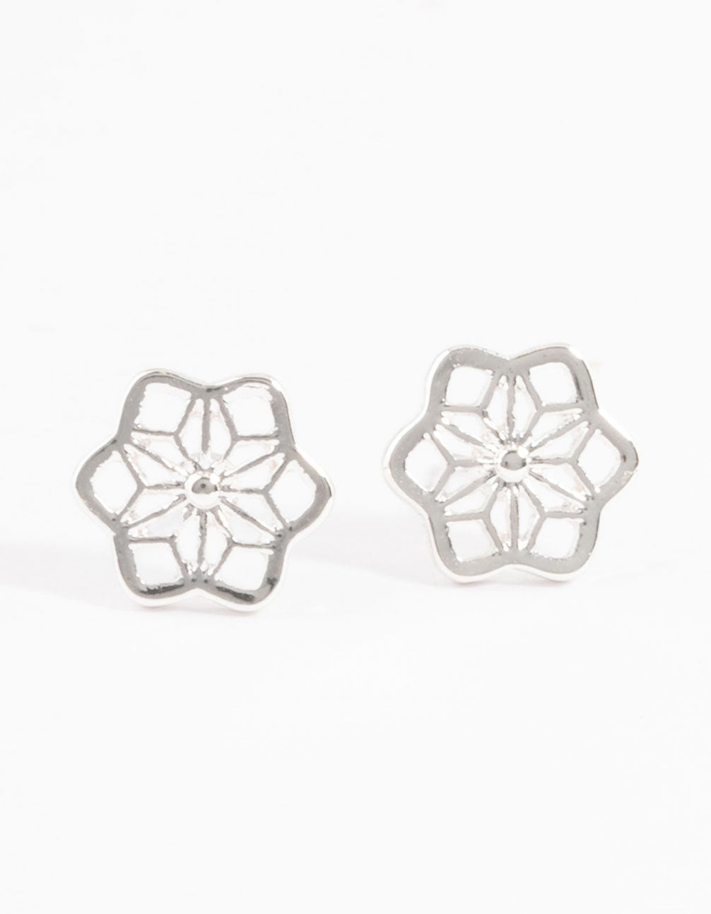 Silver Geometric Flower Stud Earrings