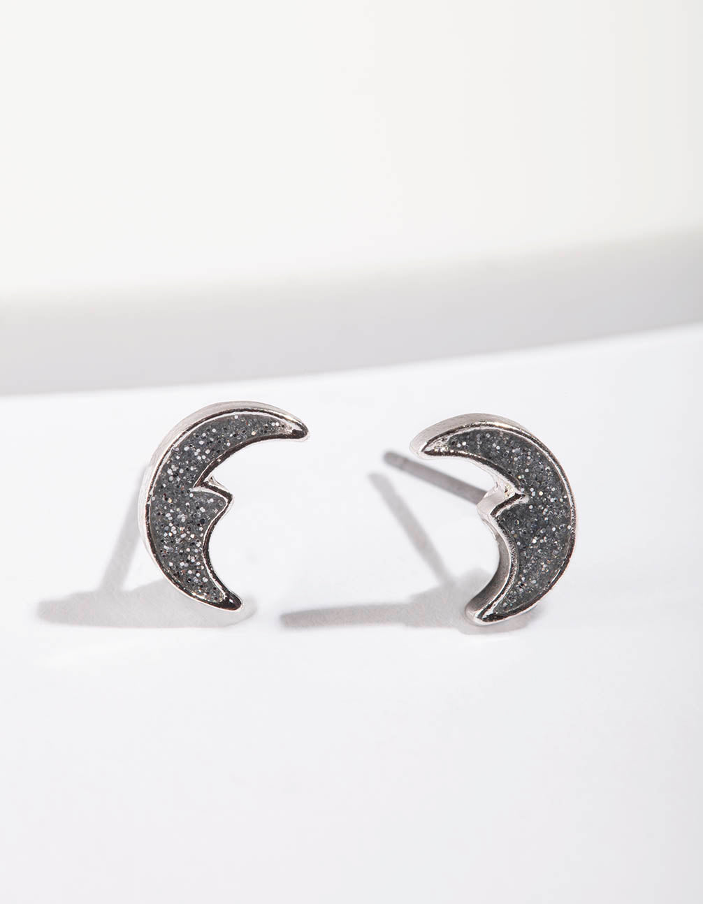 Elevate your daily ensemble with this silver toned glitter moon stud earring.