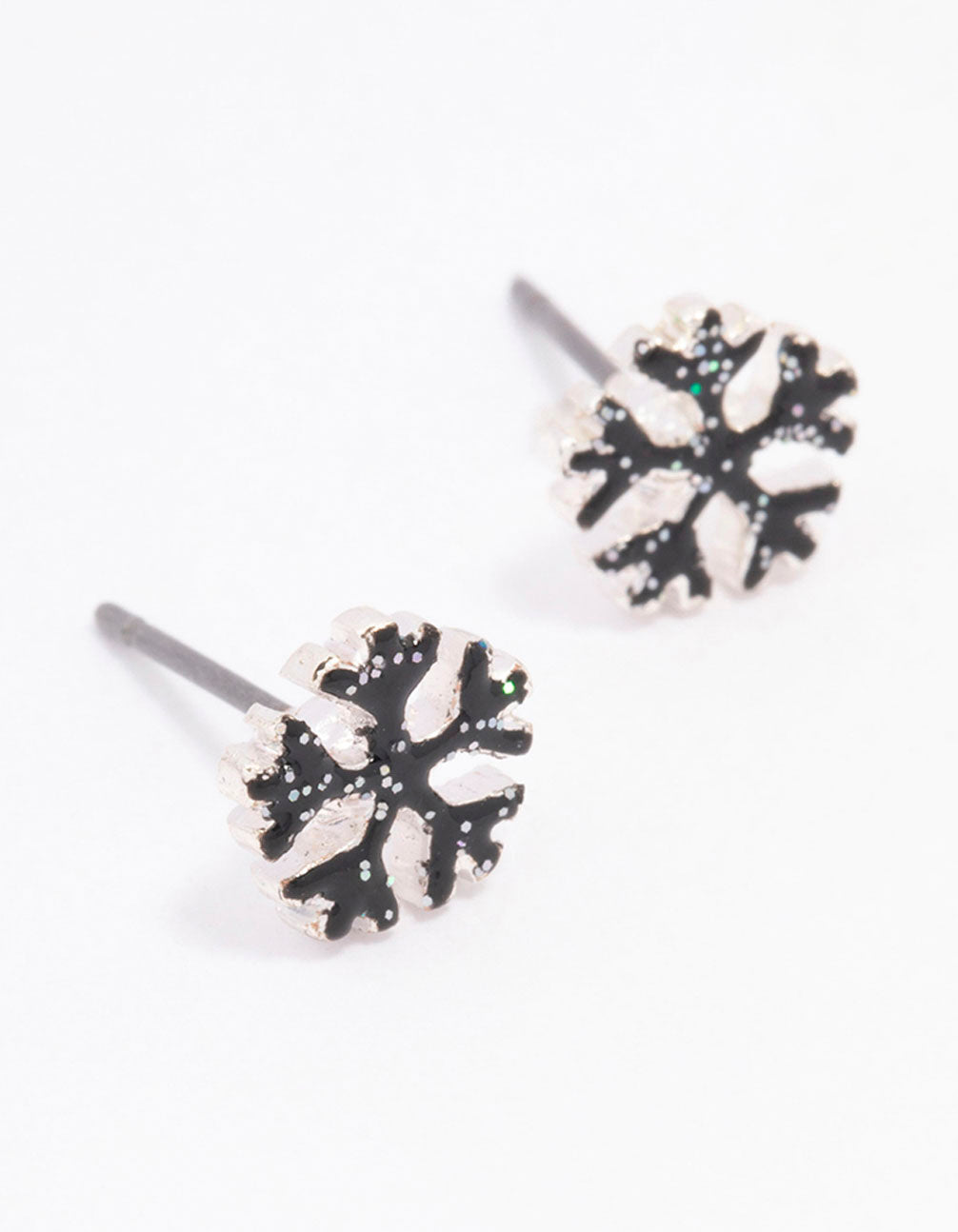 - Style these Silver Glitter Snowflake Diamante Stud Earrings for a fun and festive finish to your holiday outfits this Christmas.