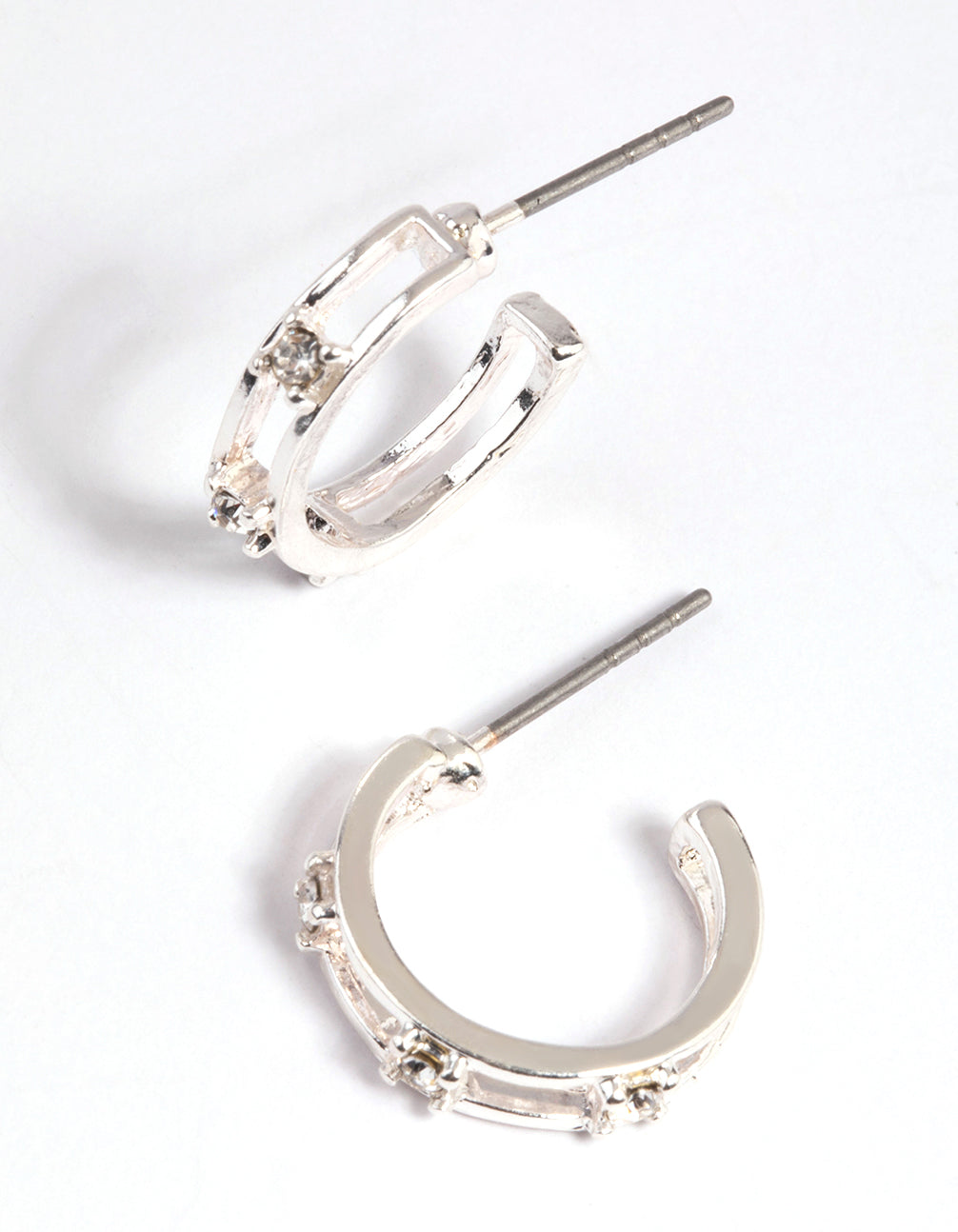 Silver Diamante Huggie Hoop Earrings Silver Diamante Huggie Hoop Earrings