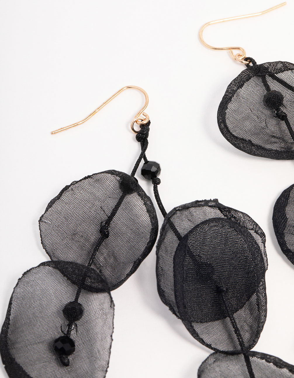 Complete your outfit with these gold-toned drop earrings. These lovely statement earrings feature a cascading design of black petals. Perfect for styling to more formal occasions!