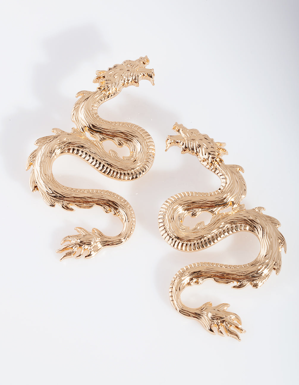 A fun pair of fashion earrings are an easy way to spice up your daily ensembles! Add some colour and experiment with your style! These earrings feature grand dragons in a gold-tone metal.
