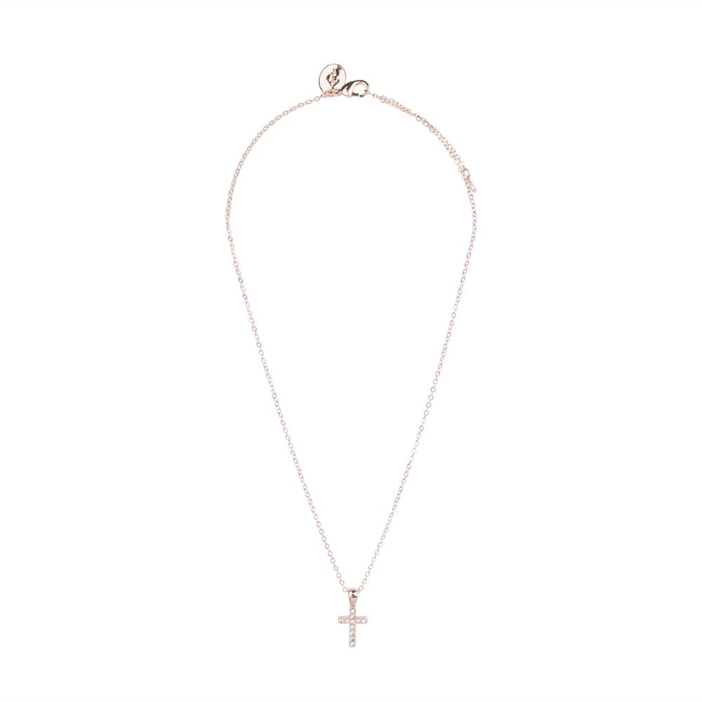 Focus on the finer things in life. This lovely rose gold-toned necklace features a diamante cross design. Wear with rose gold-toned hoops and a multi pack of dainty rings for an on-trend look.