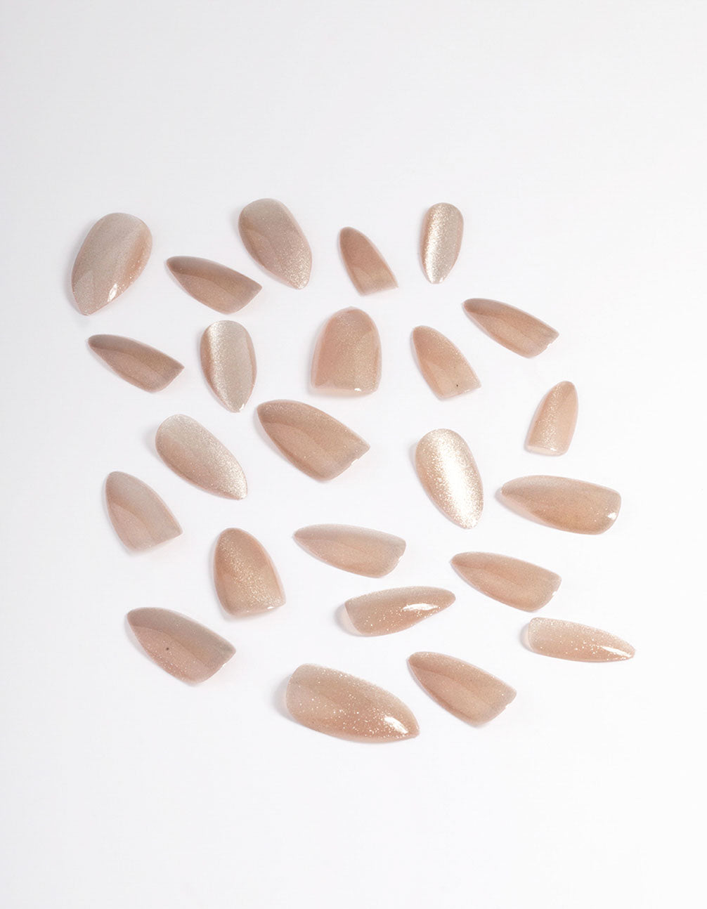 Style these metallic shimmery press on nails with an adorning ring stack for an on-trend look.