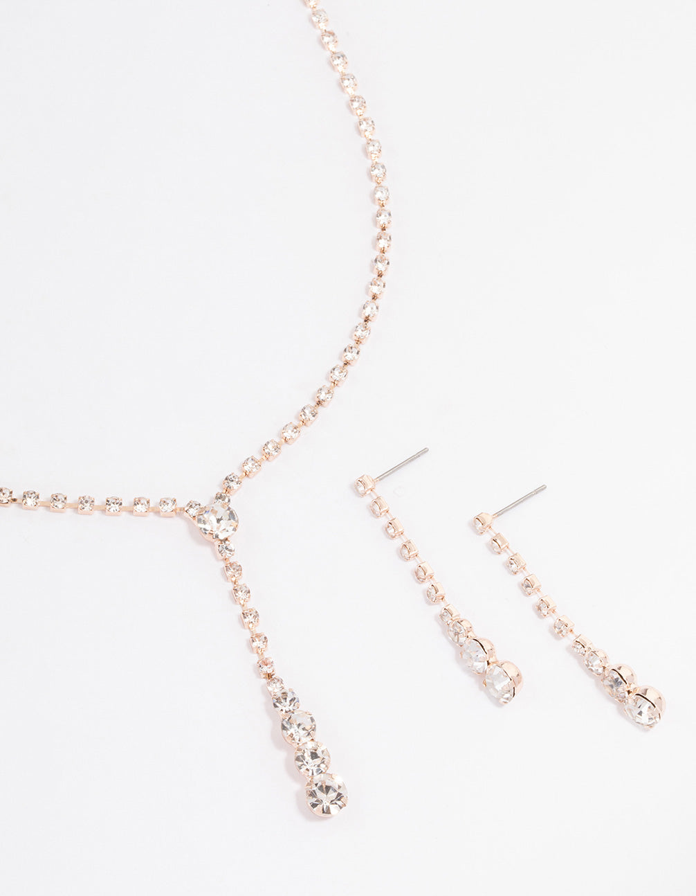 Rose Gold Cup Chain Diamante Y-Shape Necklace & Drop Earrings Jewellery Set