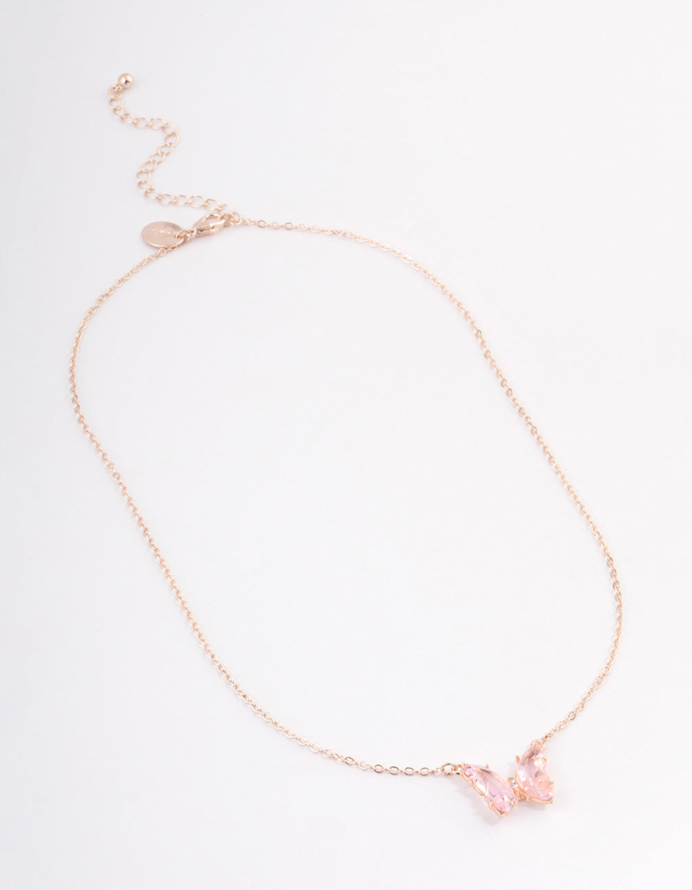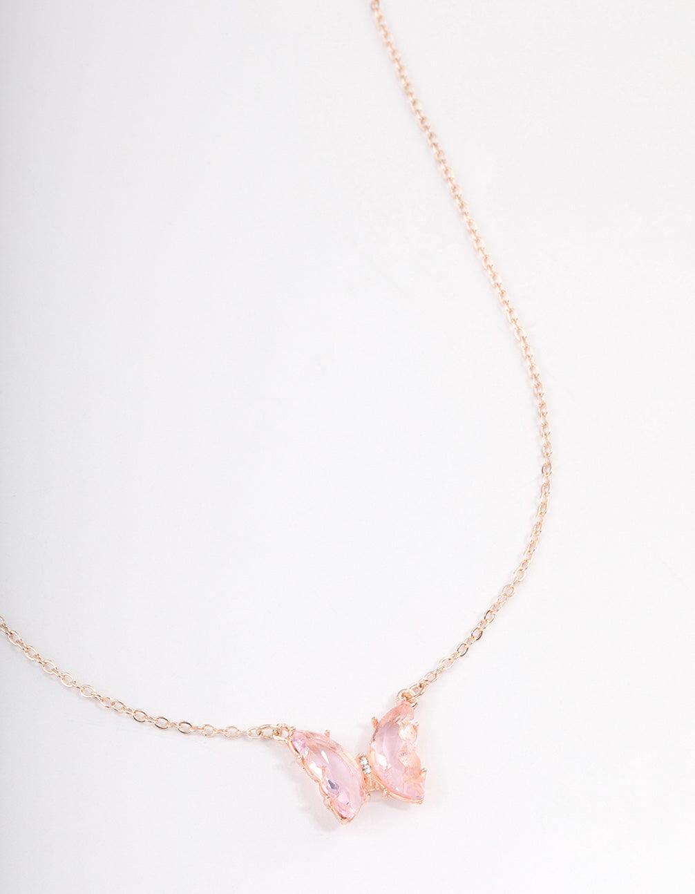 - This gift box ccontains one rose gold and pink butterfly pendant necklace.