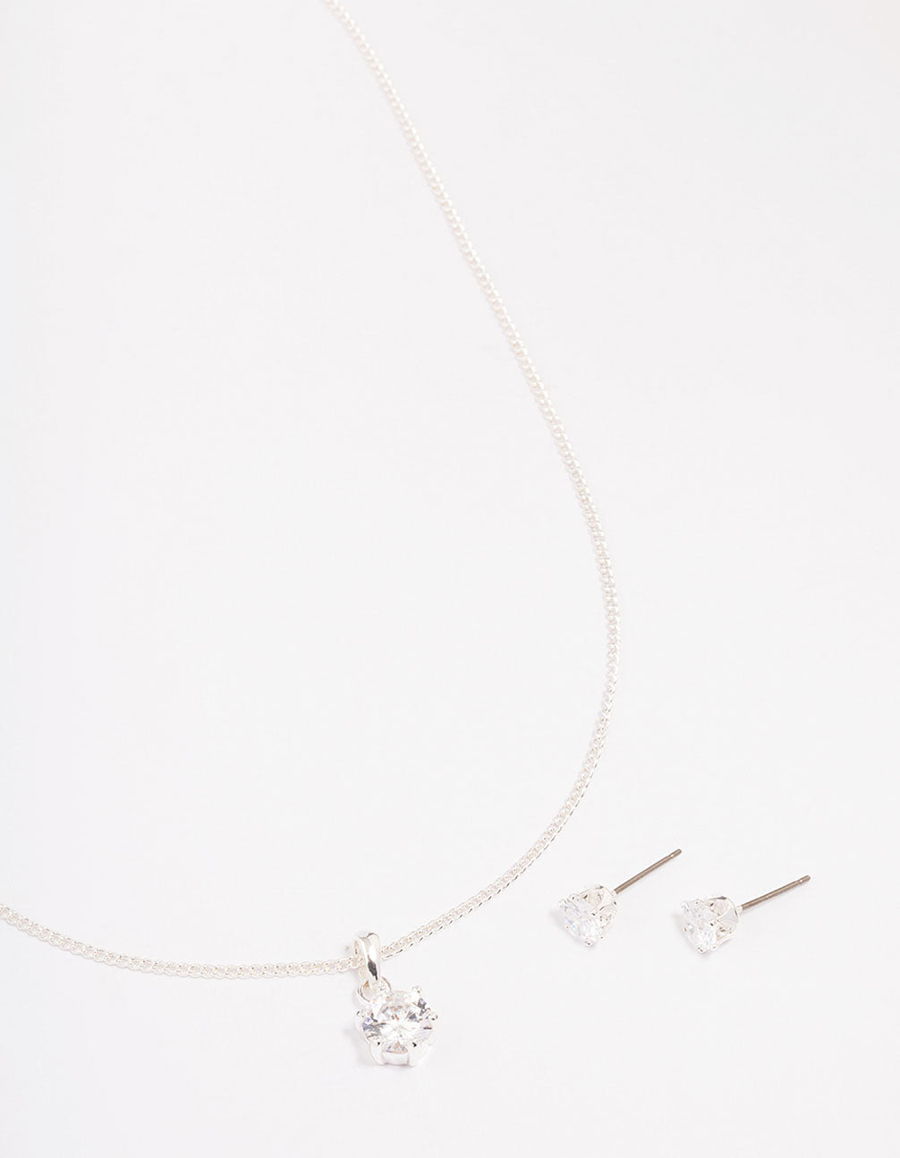 Silver Plated Cubic Zirconia Solitaire Jewellery Set