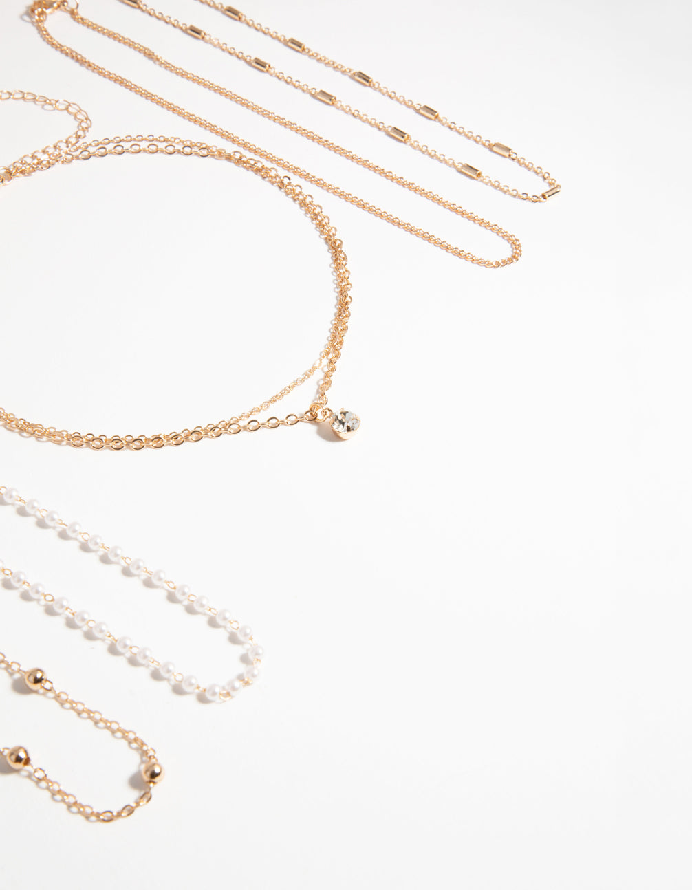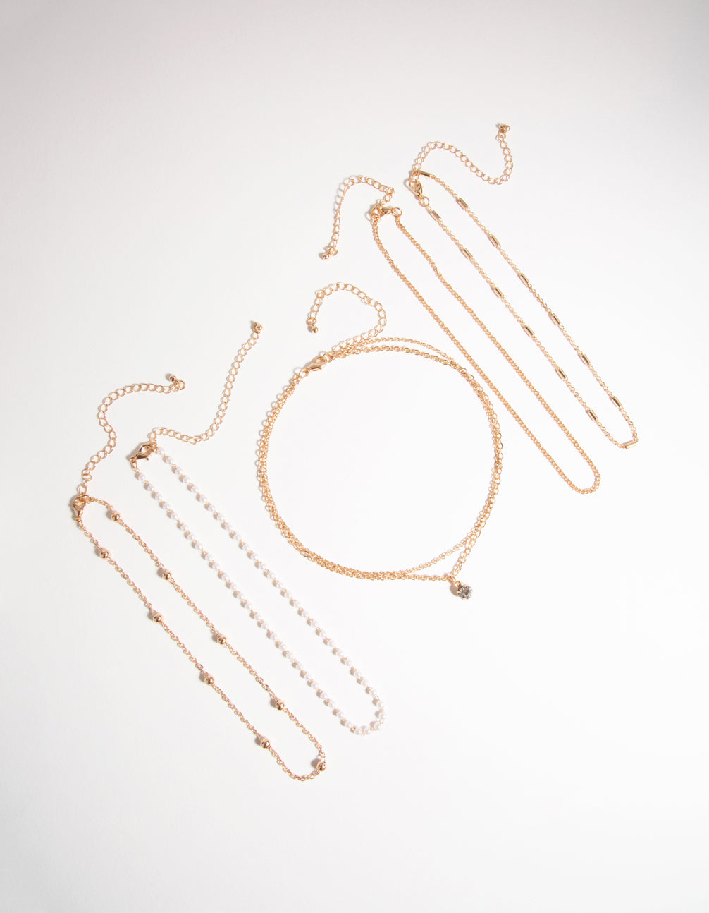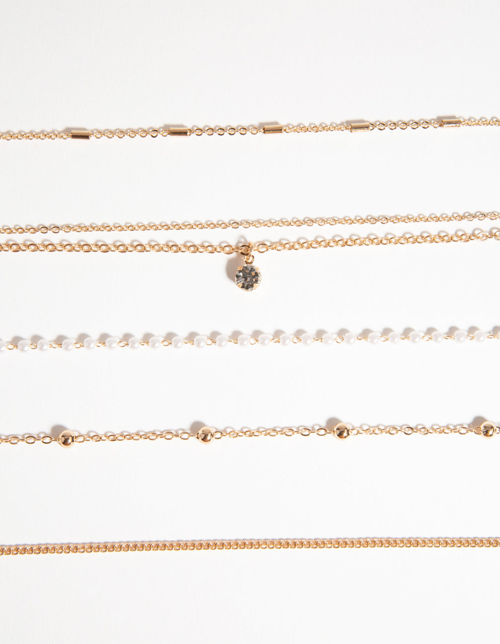 Delicate chains are versatile pieces that can be worn on their own for a classic look, or they can easily be stacked with other jewellery for big impact. This lovely gold-toned choker set includes fine faux-pearl studded chains and glittering dimantes.