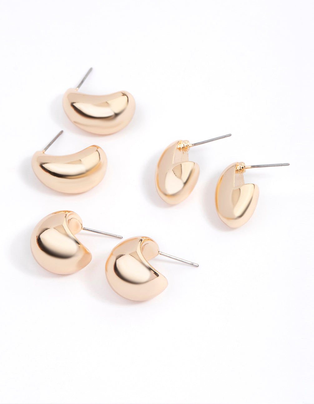 For an embellished look, style this maximalist ear stack. This earring pack contains three individual hoop earrings in a range of different styles and designs. Layer them together for a curated finish, or style them solo for a pared back look.