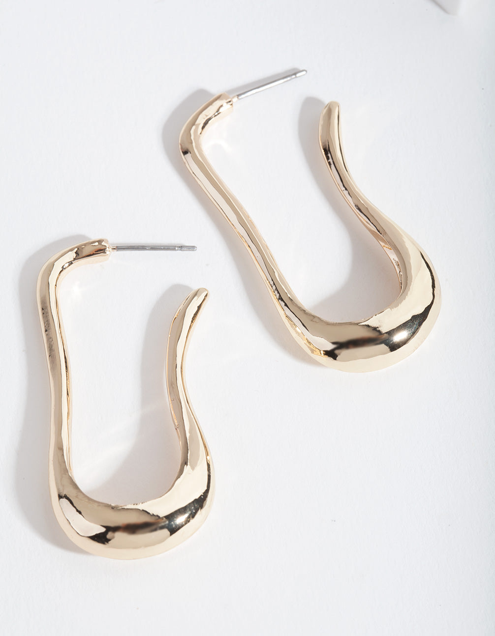 Make a statement with a pair of show-stopping fashion earrings. This pair features a gold-toned warped rectangle hoop design.
