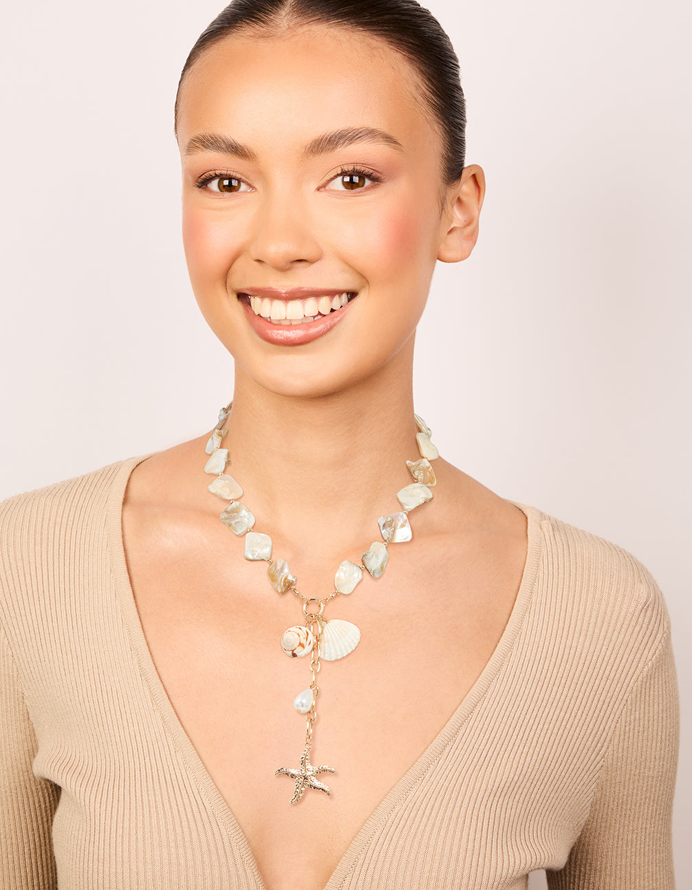 Genuine Shell Shell & Starfish Pendant Charm Necklace