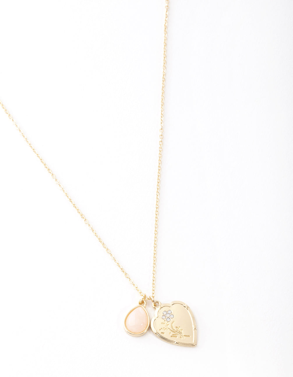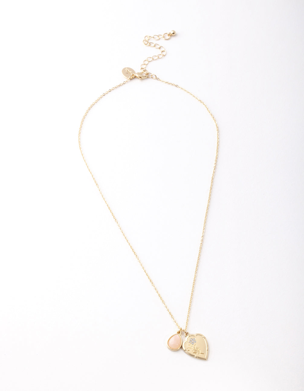 Give the perfect gift to that special someone or treat yourself with this gold-toned heart and pink semi preious stone pendant necklace.