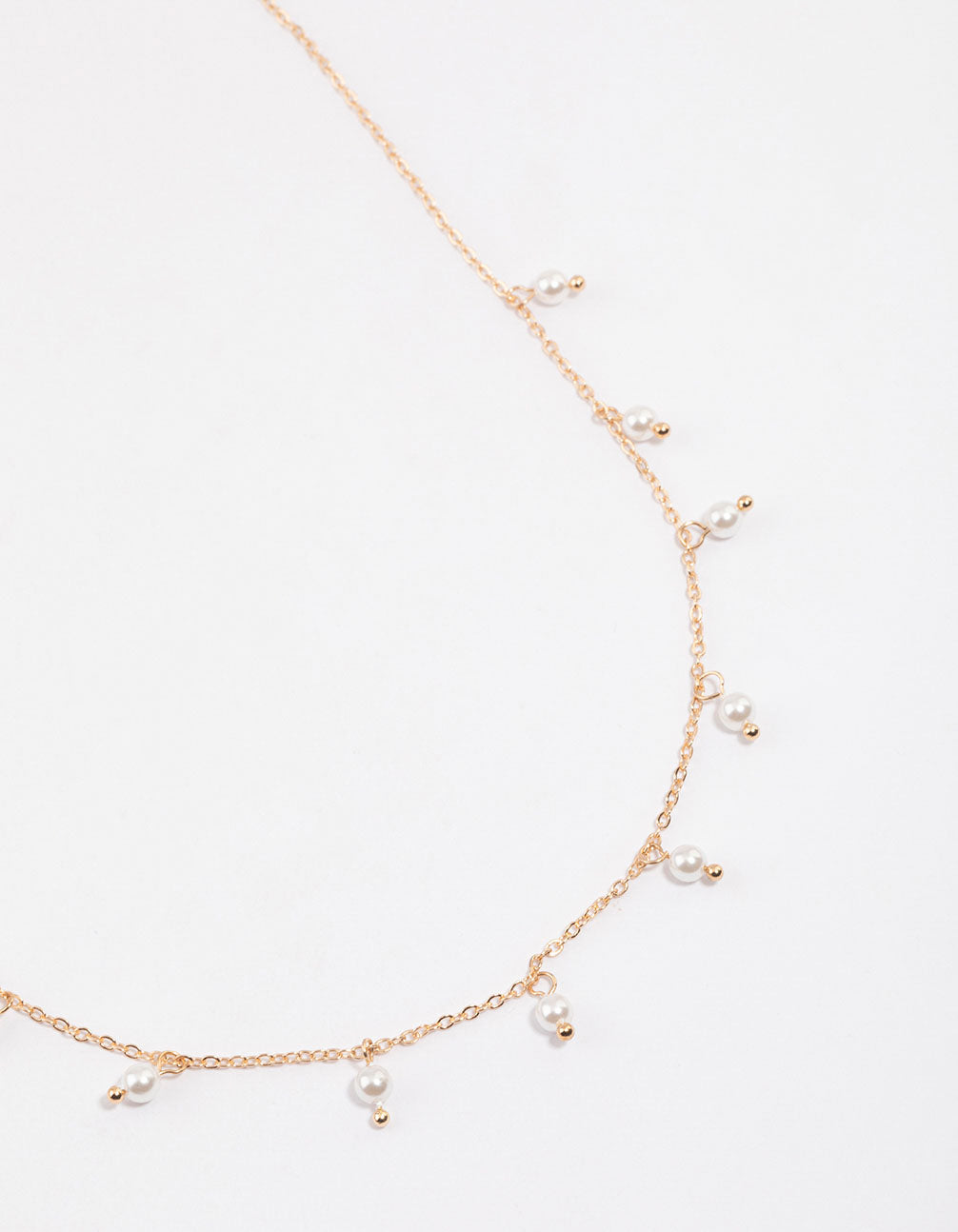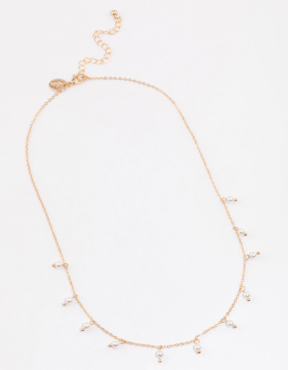 • Style this Gold Pearl Droplet Necklace with a dainty choker and pop it back in its pouch when you're done styling.