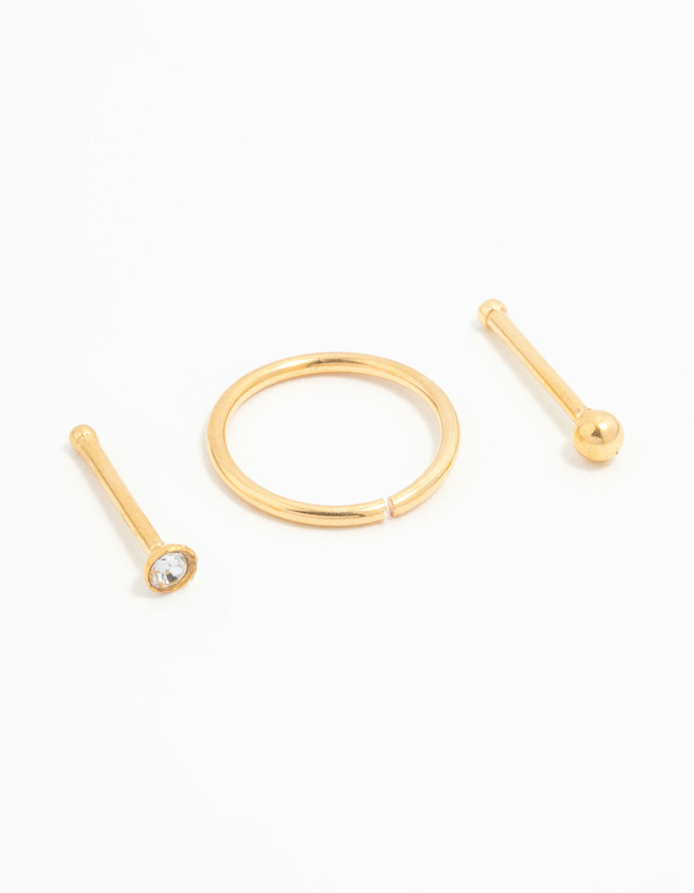 Gold Plated Titanium Ball & Diamante Nose Stud & Ring 3-Pack