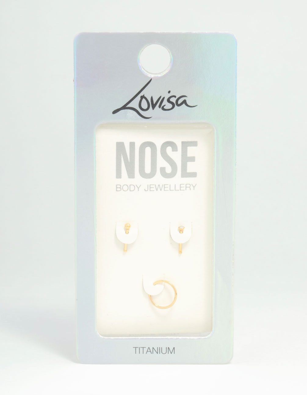 Upgrade your nose game with this titanium trio! Featuring a sleek stud, a sparkly diamante stud, and a chic nose ring, this set adds a fun, confident touch to any look.