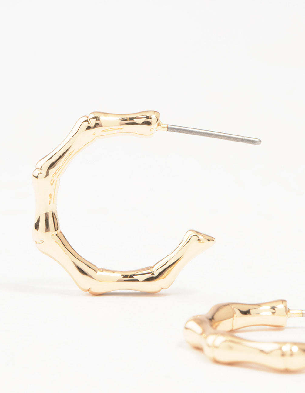 Add some flair to your look with these gold-toned bamboo hoops! They're a playful twist on the classic hoop, perfect for adding texture and visual interest.