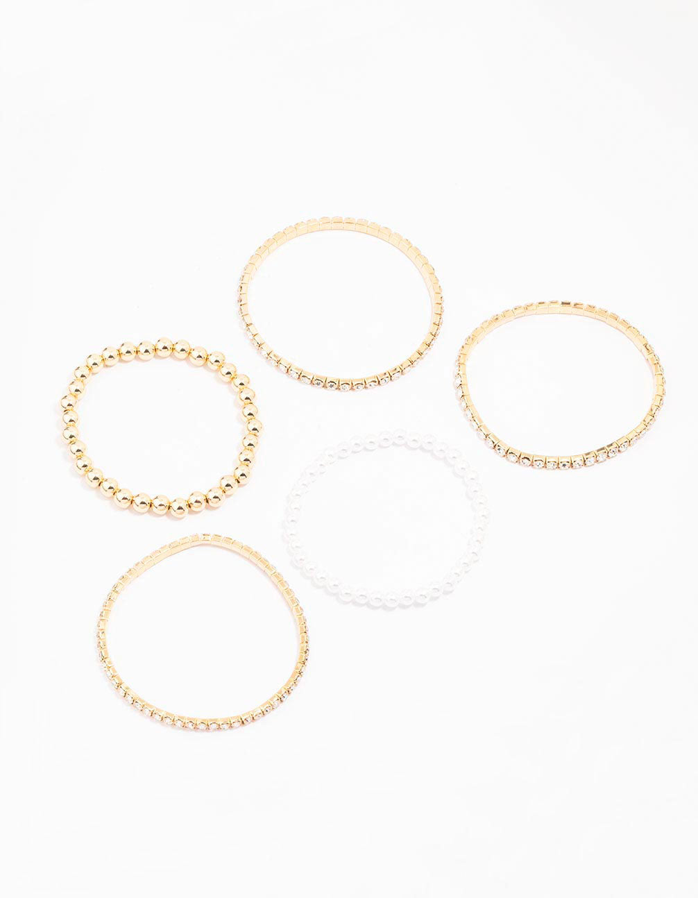 Add detail to your stack with these gorgeous, gold-toned bracelets. This bracelet pack includes five individual bracelets, each adorned with round gold beads.