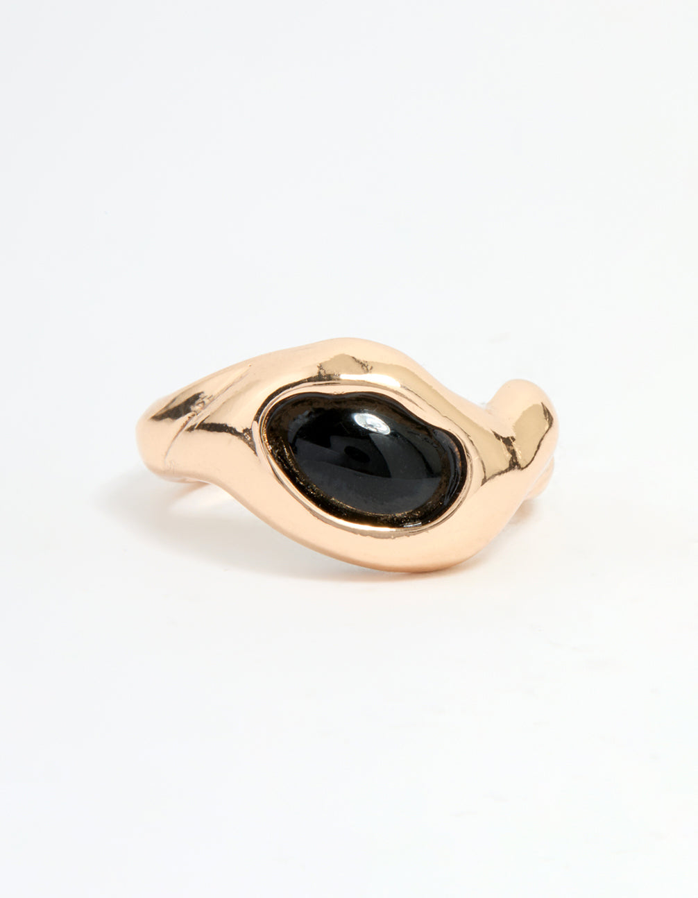 Add a touch of elegance to your look with this Gold Black Stone Circle Ring. This stylish ring features a sleek circular design, crafted with a radiant gold finish that exudes modern sophistication. At its heart is a striking black stone, creating a bold yet timeless contrast. Perfect for everyday wear or special occasions, this ring pairs effortlessly with a chic dress for dinner parties or adds a hint of glamour to casual jeans and a blazer. Whether you're stacking it with other rings or letting it shine solo, this ring is a versatile jewellery piece that's as bold as you are.