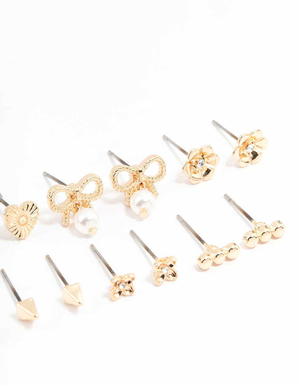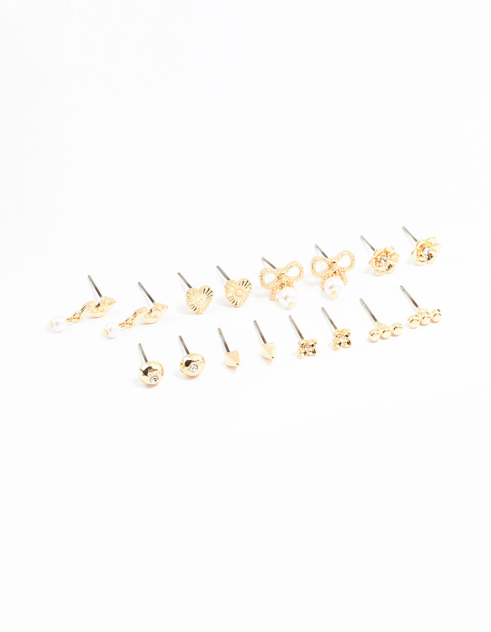 Gold Bow & Pearl Stud Earrings 8-Pack