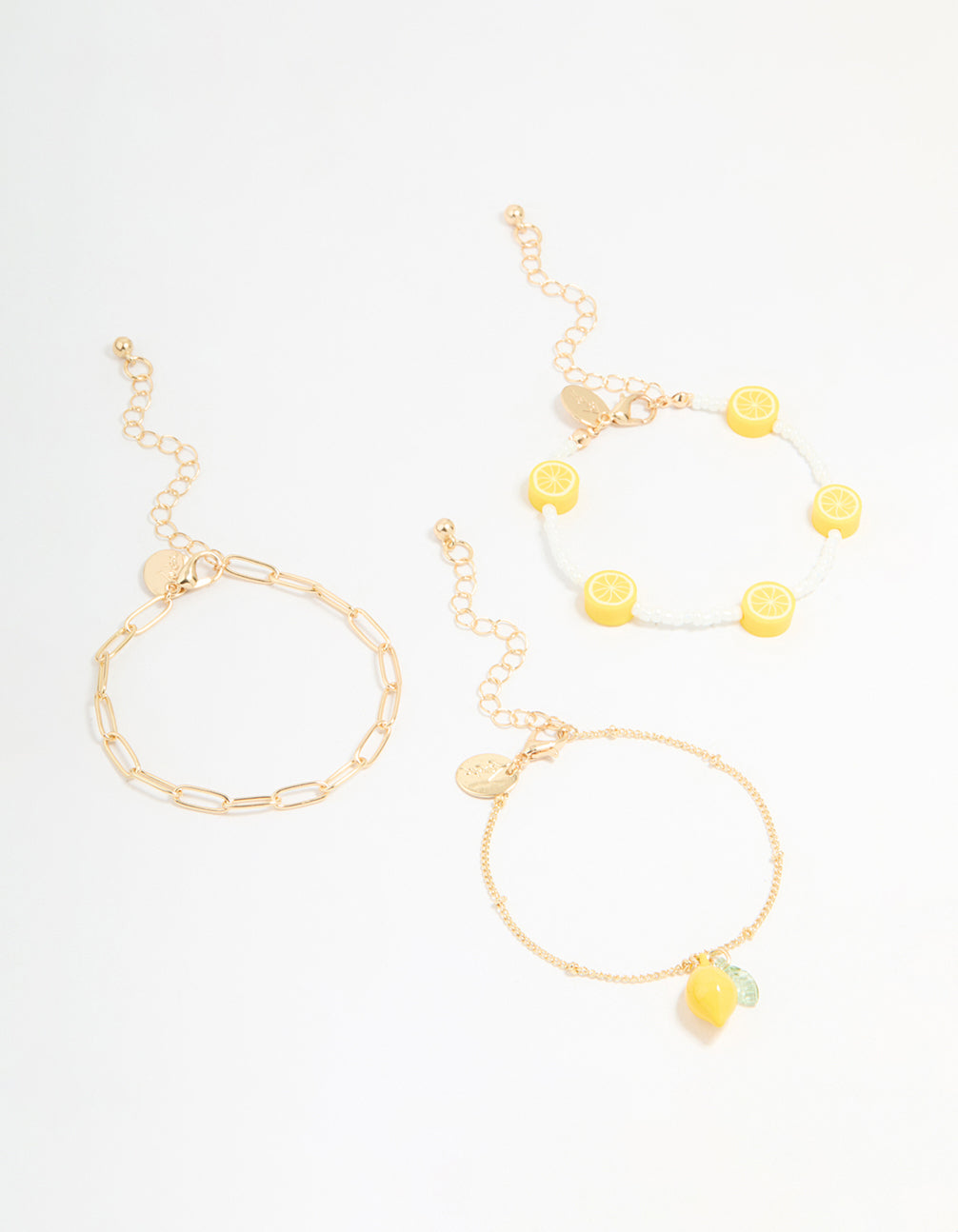 Gold Chain & Lemon Charm Bracelets 3-Pack