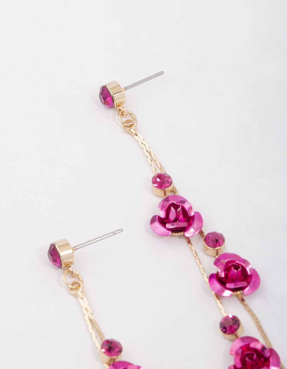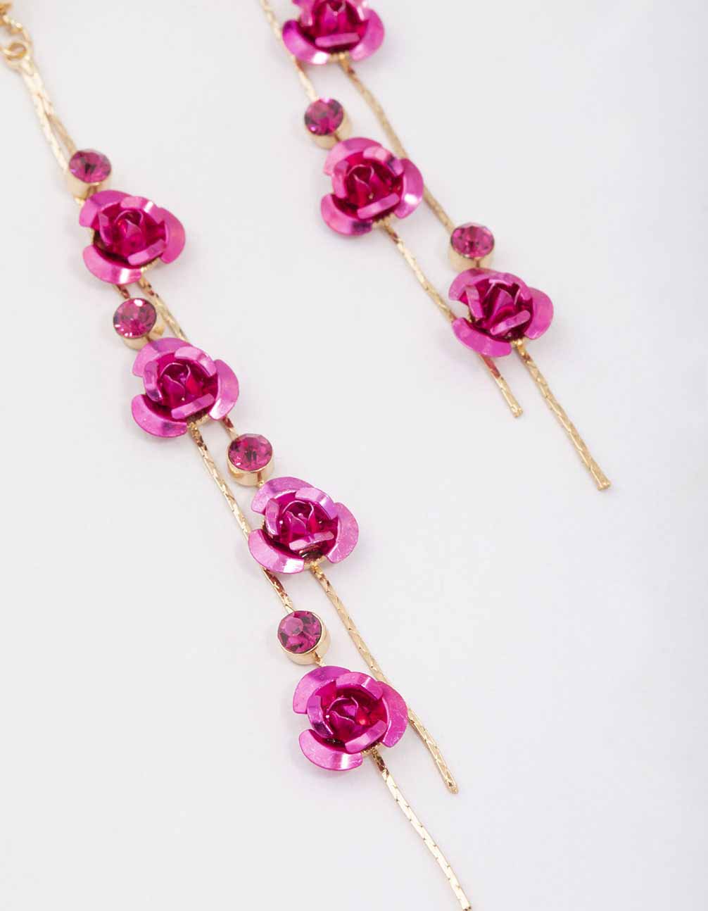 Gold Climbing Hot Pink Rose Drop Earrings Gold Climbing Hot Pink Rose Drop Earrings Gold Climbing Hot Pink Rose Drop Earrings