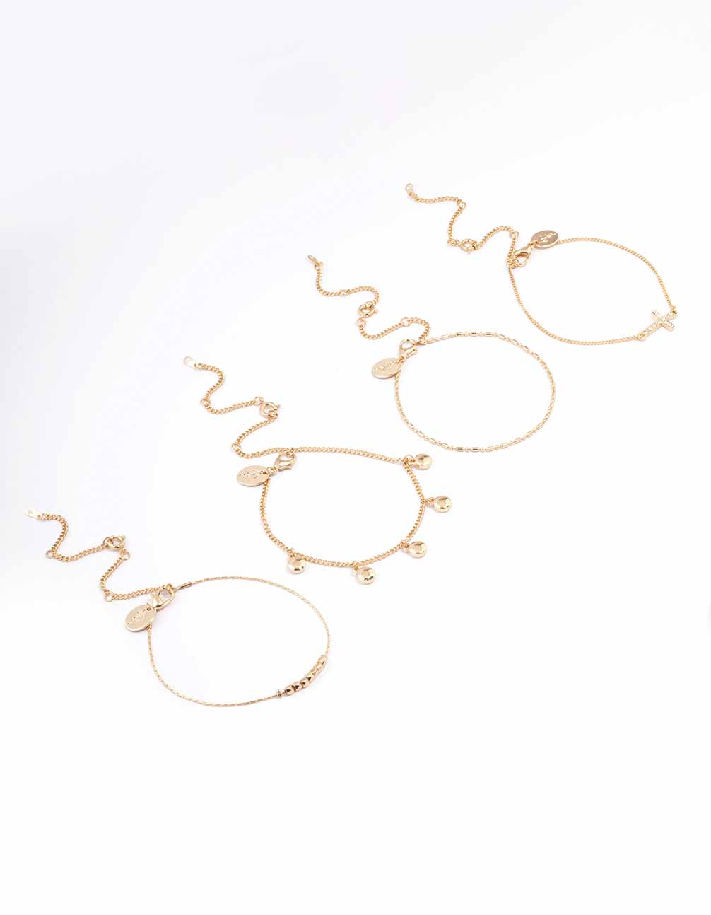 Layer your look your way! This jewellery set contains four gold-toned chains that can be styled as a bracelet or an anklet.