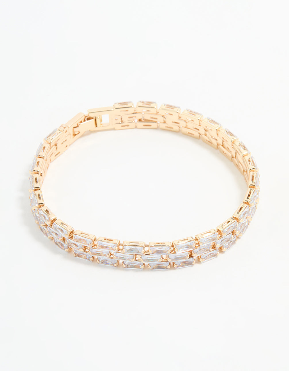Gold Cubic Zirconia Baguette Layered Bracelet