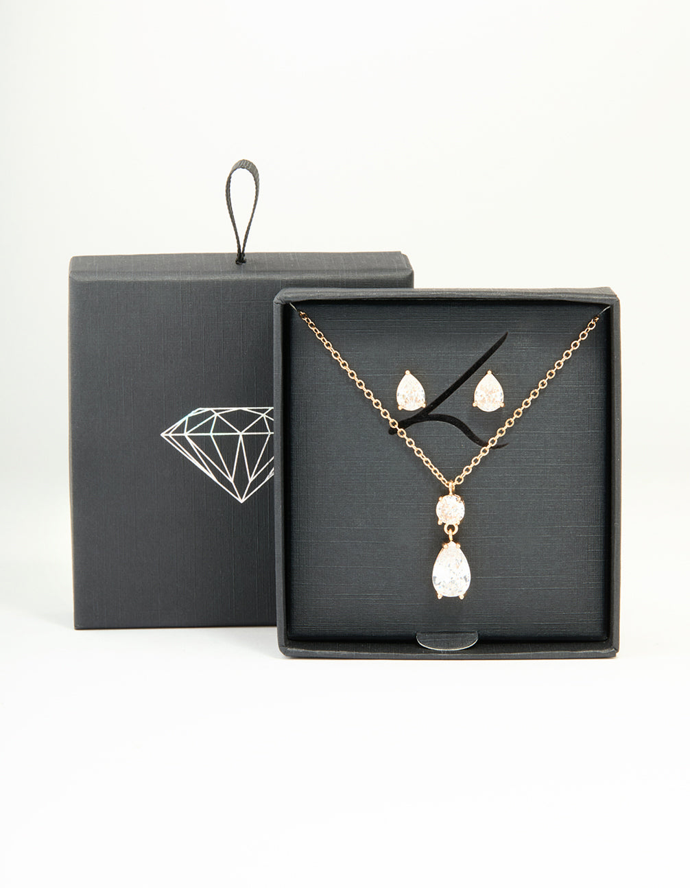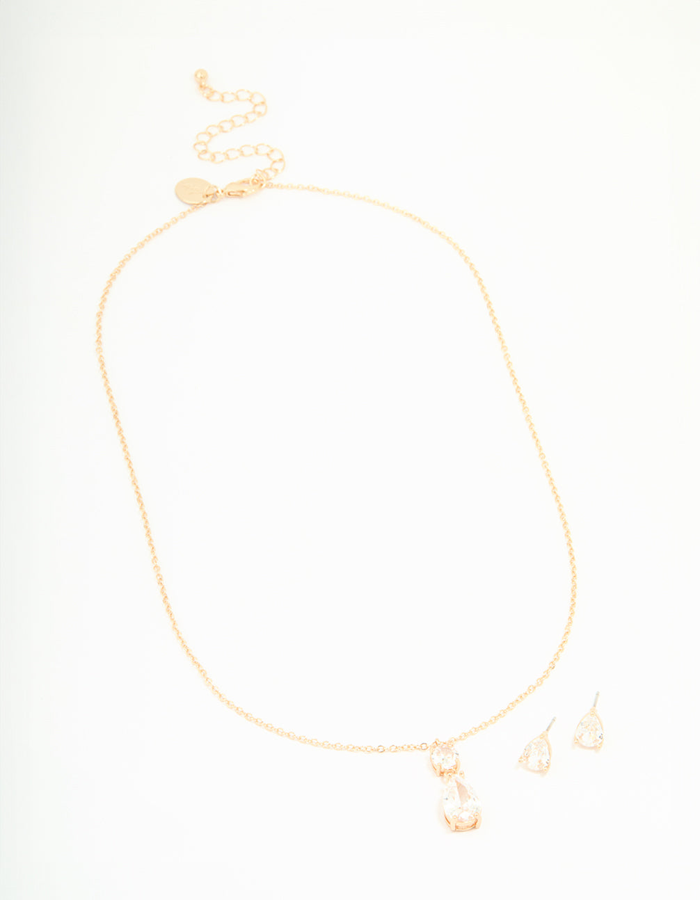 Gold Cubic Zirconia Classic Teardrop Earrings & Necklace Set