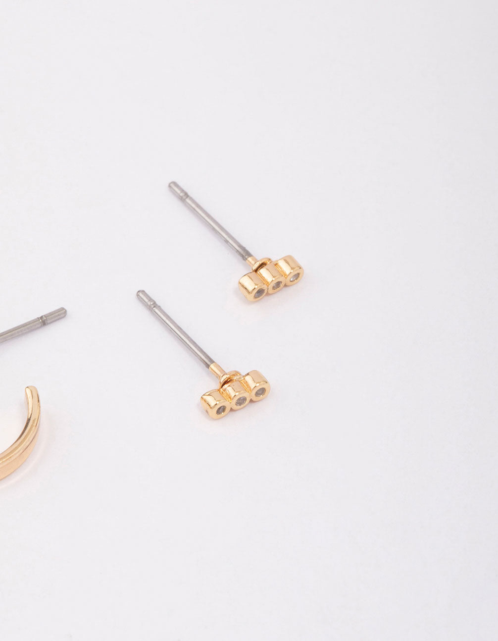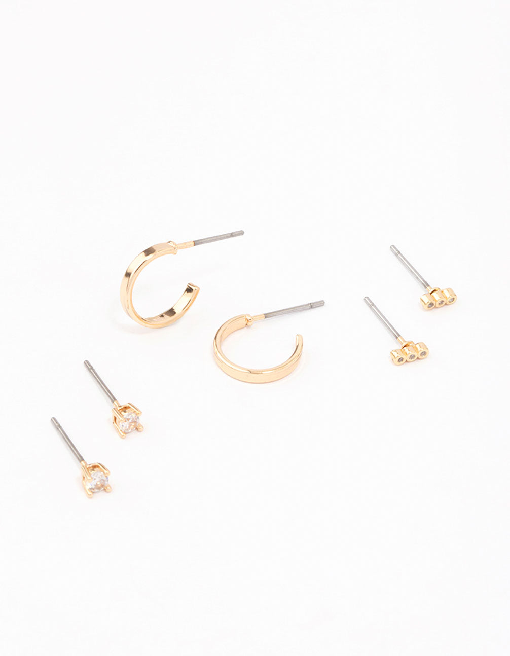 Gold Cubic Zirconia Huggie & Stud Earring 3-Pack
