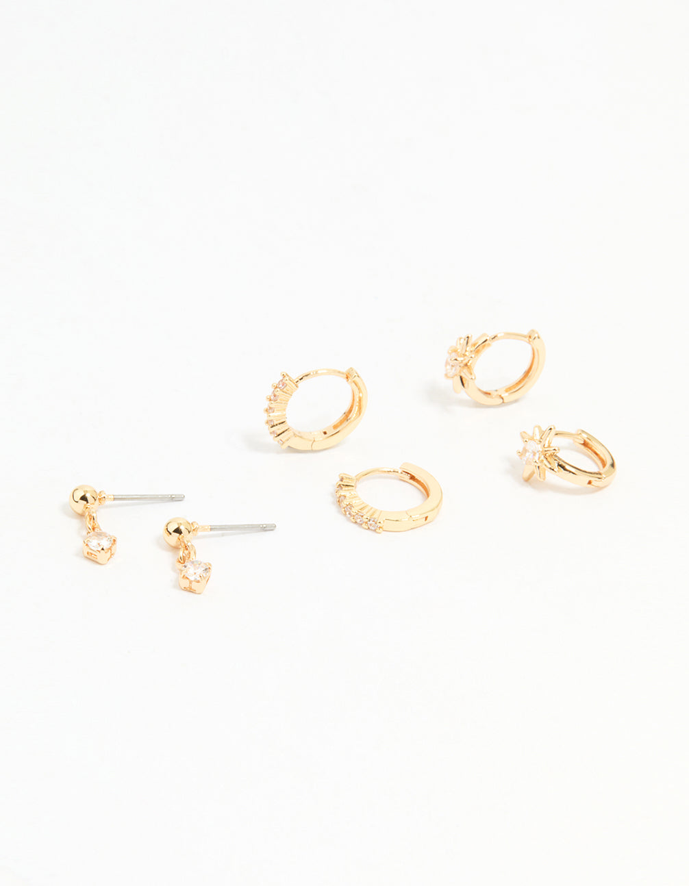 Gold Cubic Zirconia Mixed Cross Huggie & Stud Earrings 3-Pack
