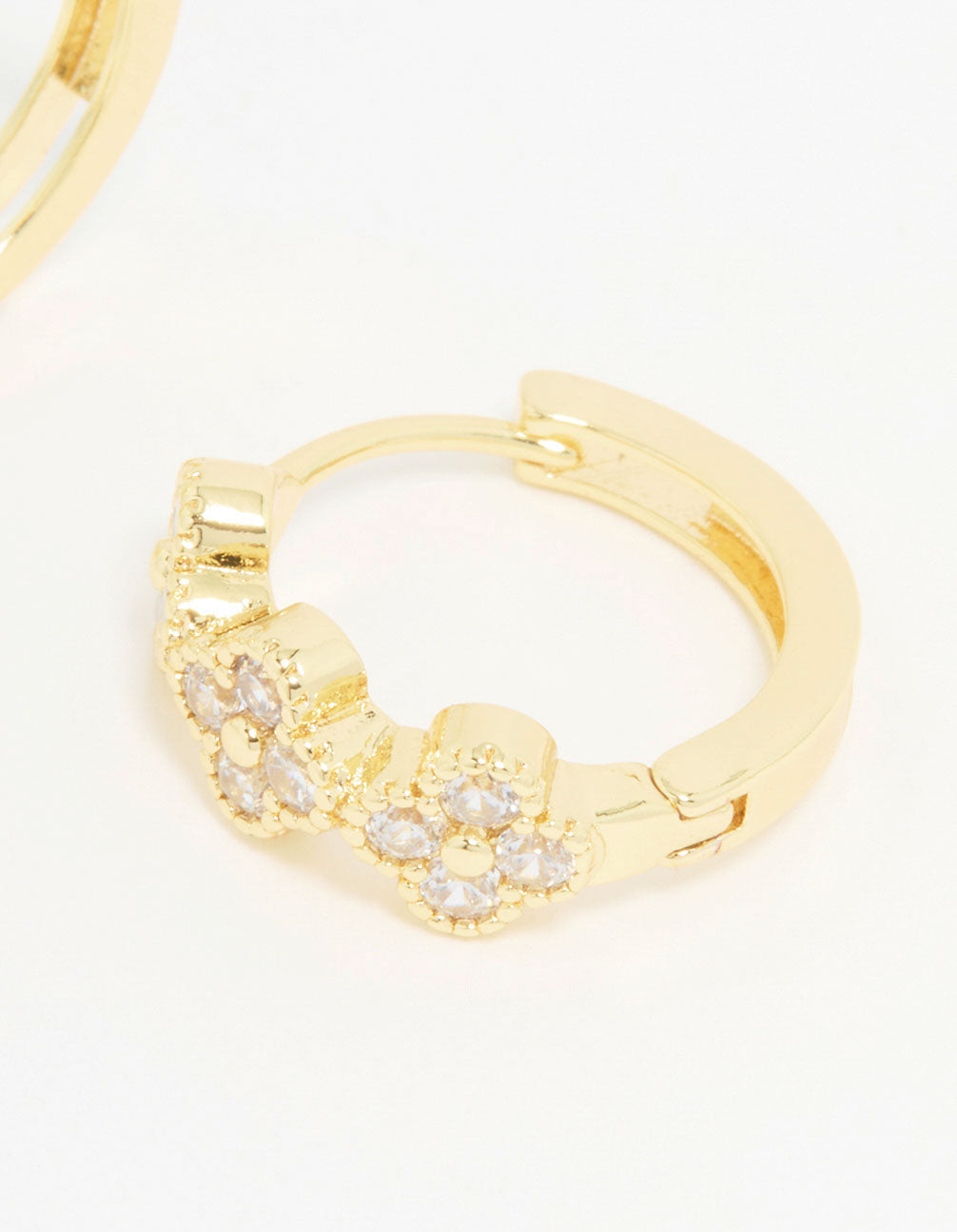 Gold Plated Cubic Zirconia Petal Hoop Earrings