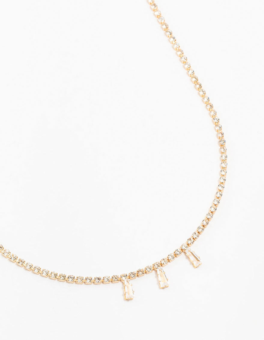 Update your everyday look with this captivating Gold Cup Chain Baguette Necklace. This stunning chain necklace features a chic baguette-cut diamante pendants that catch the light with a radiant glow.