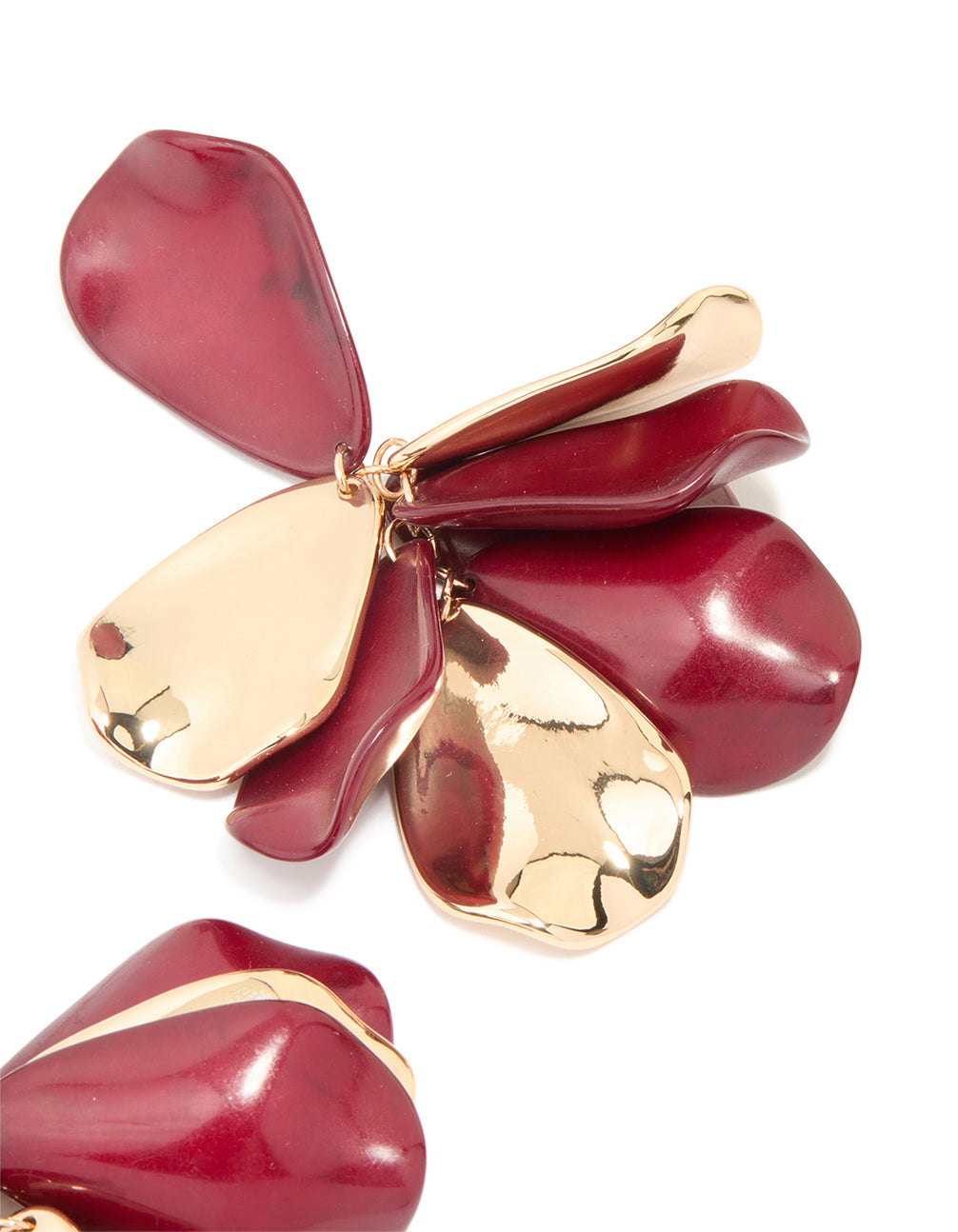 Step into autumn in style with these Gold & Dark Red Petal Drop Earrings. With rich burgundy tones and warm gold hues, these earrings embrace the feminine flower trend that's blooming into the cooler months. The petal-inspired design, paired with a sleek gold finish, creates a luxurious yet playful vibe. Perfect for weddings, special events, or even dressing up your everyday look, these earrings add a touch of sophistication to any outfit. Pair them with a cosy knit and jeans for a chic autumnal feel or with a flowy dress for a romantic evening look. Whether you're searching for drop earrings, floral-inspired jewellery, or bold seasonal accessories, these elegant earrings are a must-have!