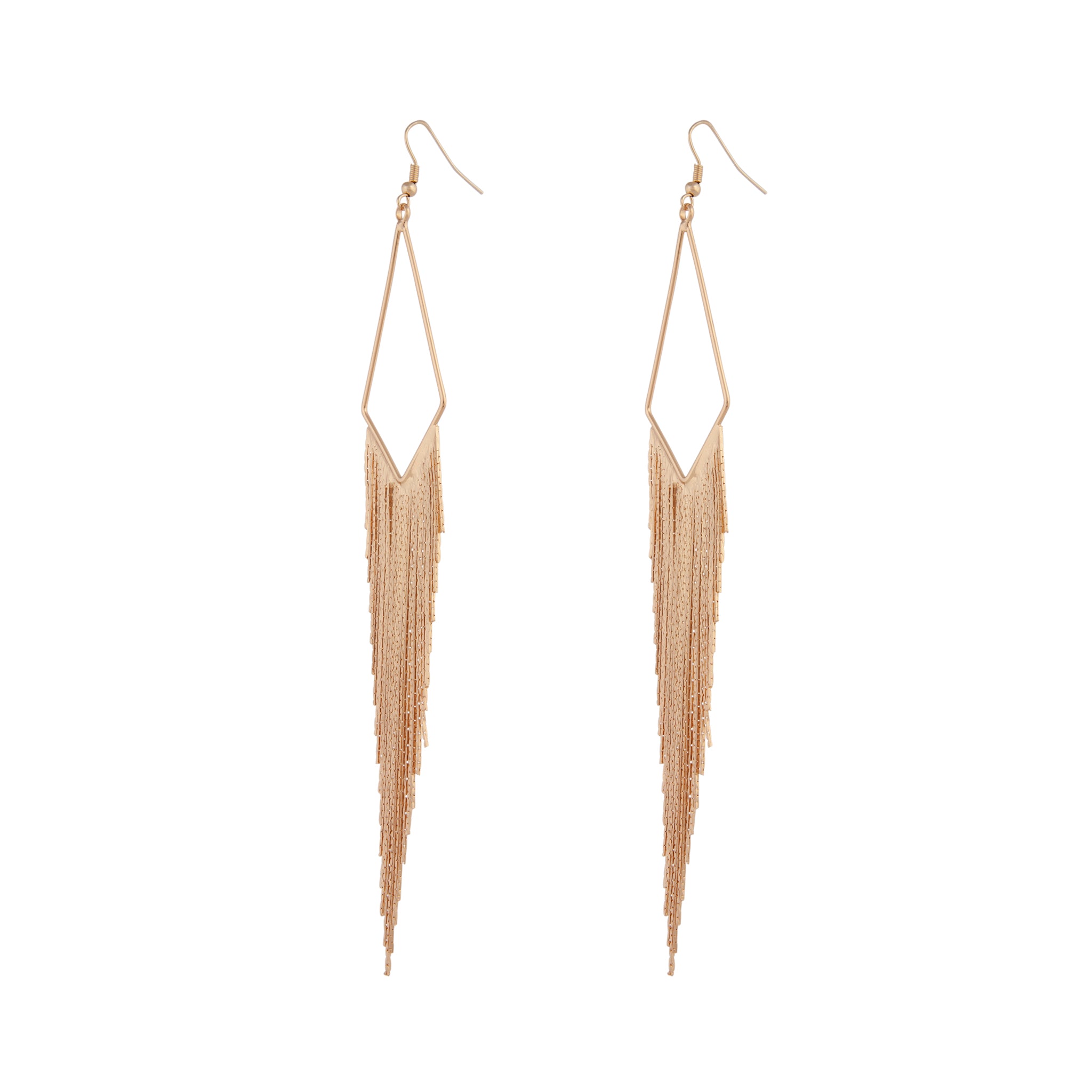A pair of long gold-toned earrings with a glamorous fringe design.