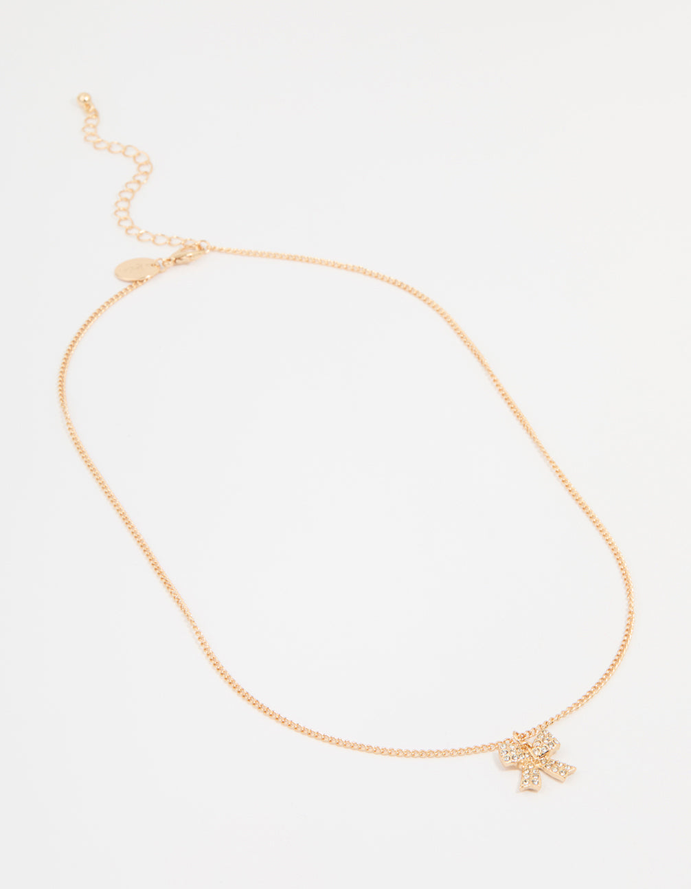 Gold Diamante Bow Necklace Gold Diamante Bow Necklace