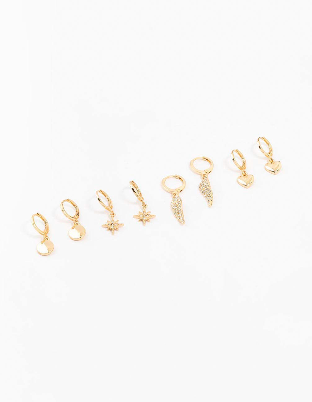 Gold Diamante Mixed Huggie Earrings 4-Pack