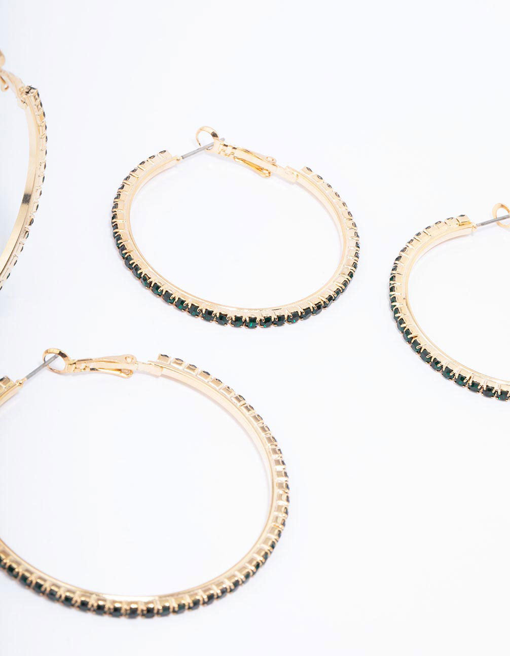 Gold Diamante Mixed Size Hoop Earring 3-Pack