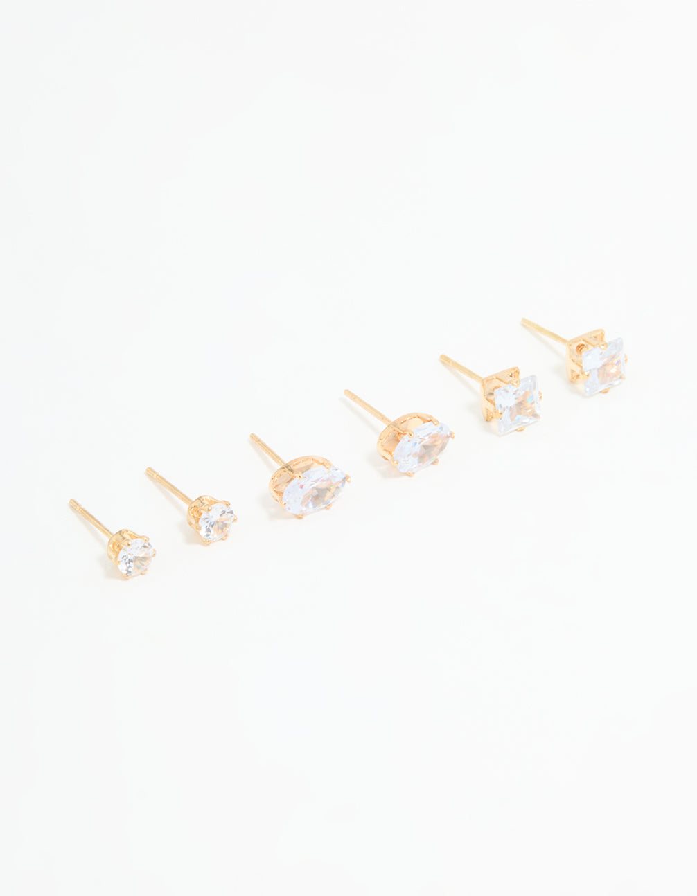 Gold Diamante Mixed Stud Earrings 3-Pack
