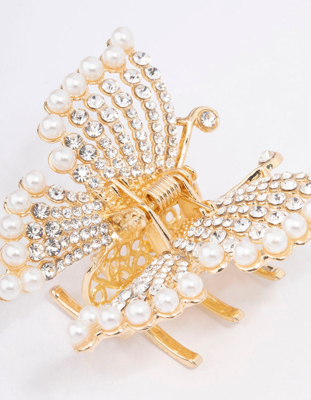 Gold Diamante Pearl Butterfly Hair Claw Clip